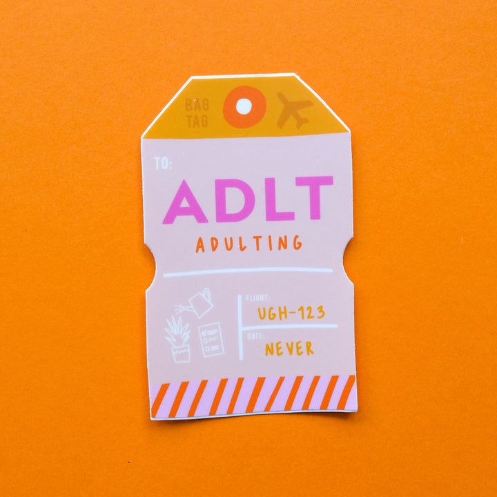 Do you have a one way non-refundable ticker to adulthood? Don’t worry, you’re not alone. This funny bag tag sticker pokes fun at the hardships that come with "adulting."