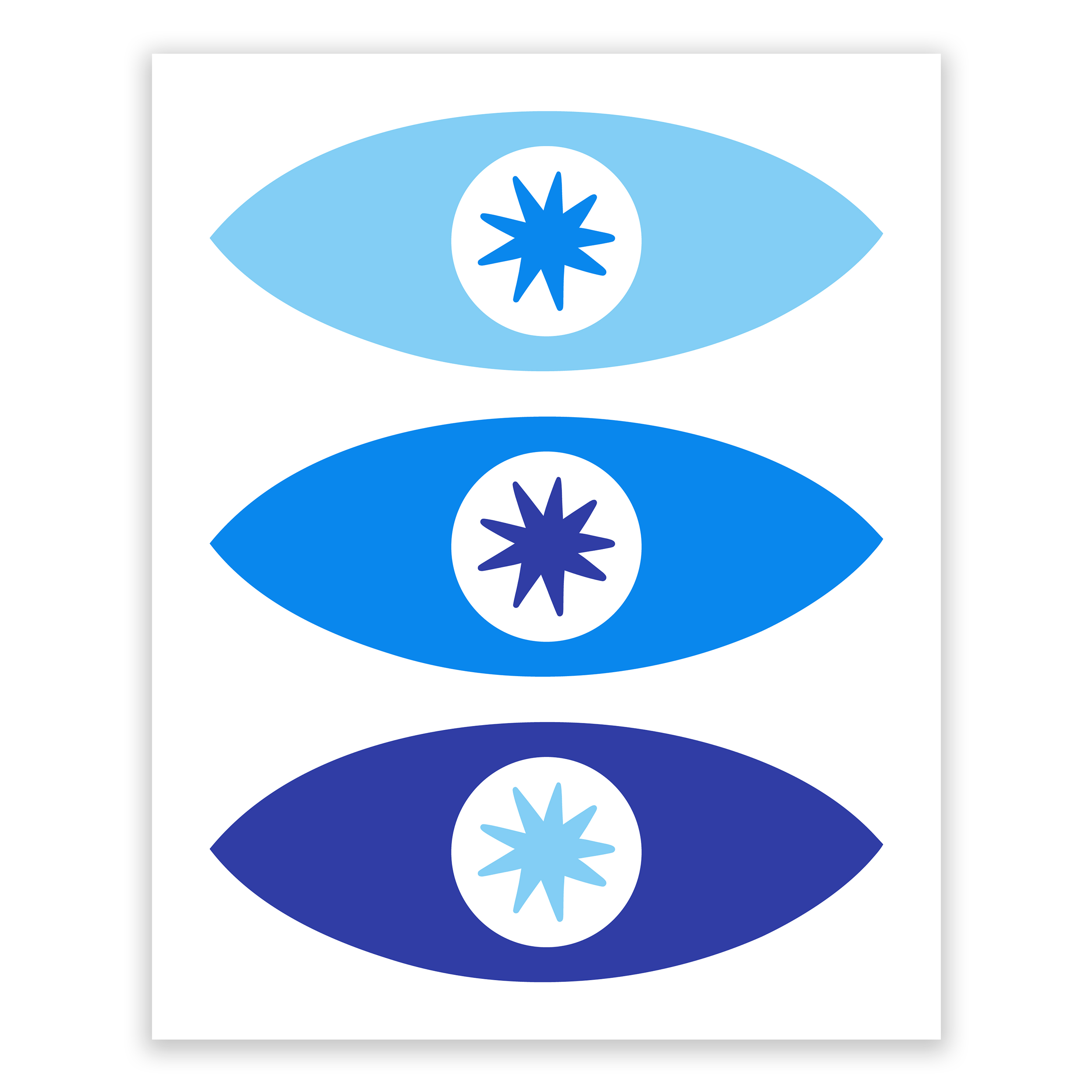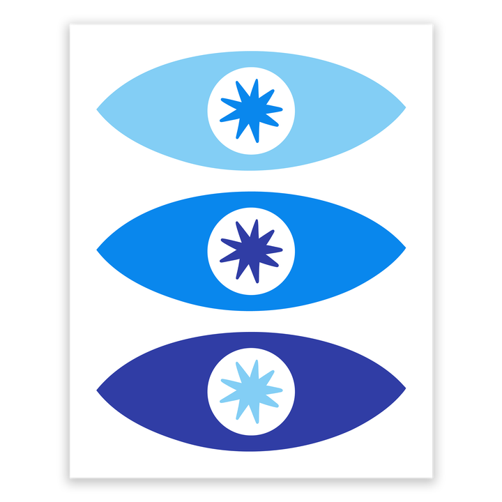 Elevate your space with this Bauhaus-inspired art print, featuring a trio of star-struck stylized eyes in a bold, blue-toned palette. This piece blends the iconic simplicity and geometric elegance of the Bauhaus movement, making it a striking addition to any modern home decor.