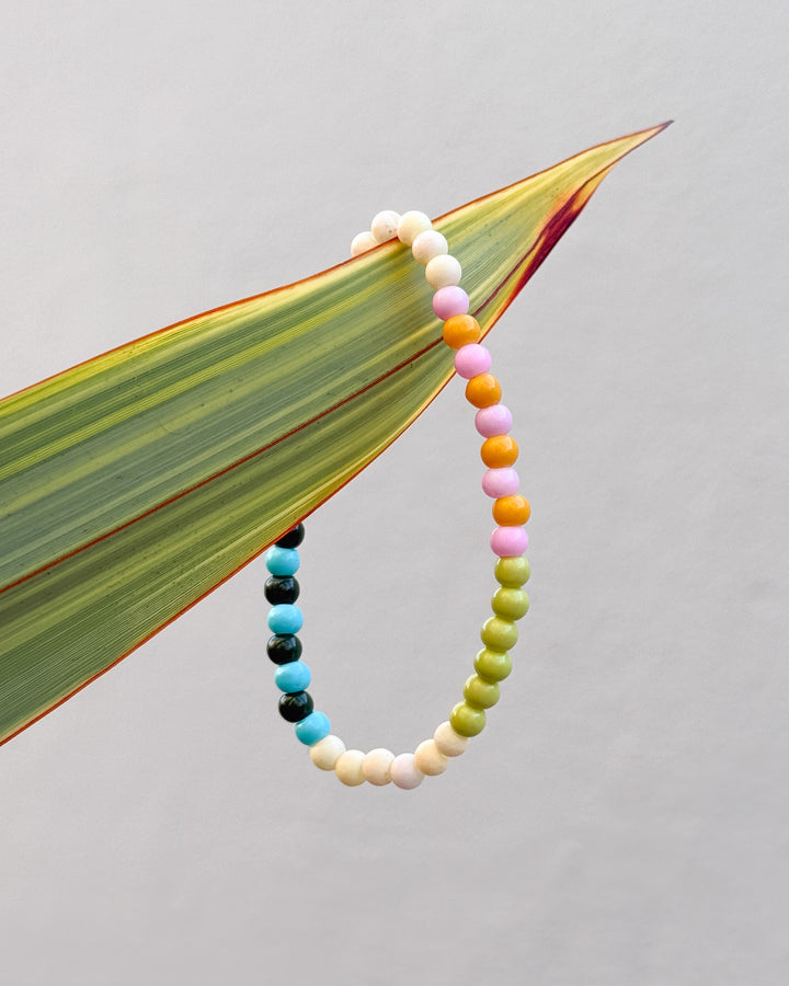 Multicolored stretchy beaded bracelet with 4mm colored glass beads. Elevate your everyday stack with this adorable bracelet or wear it solo. Offered in two sizes so those with smaller wrists can enjoy as well!