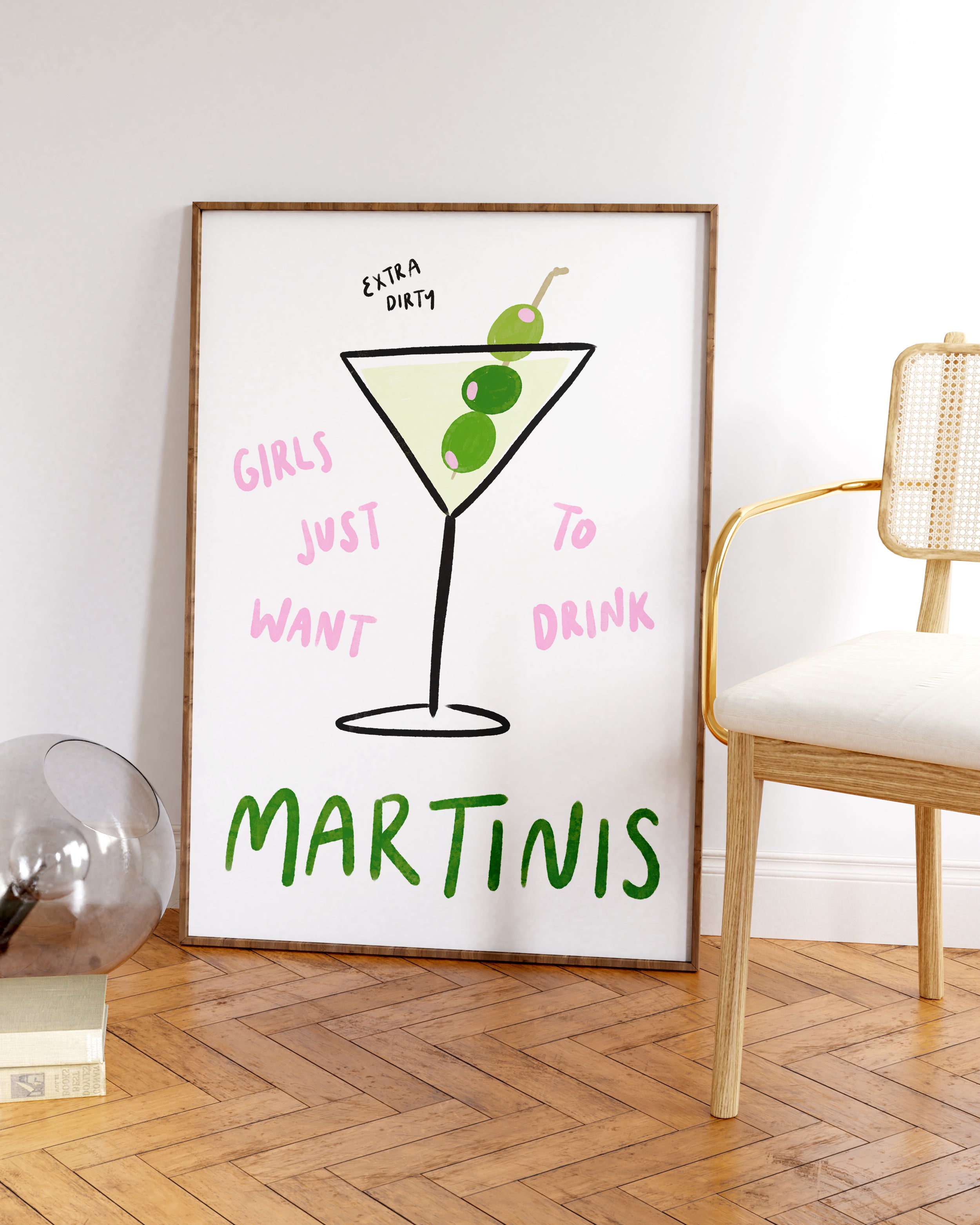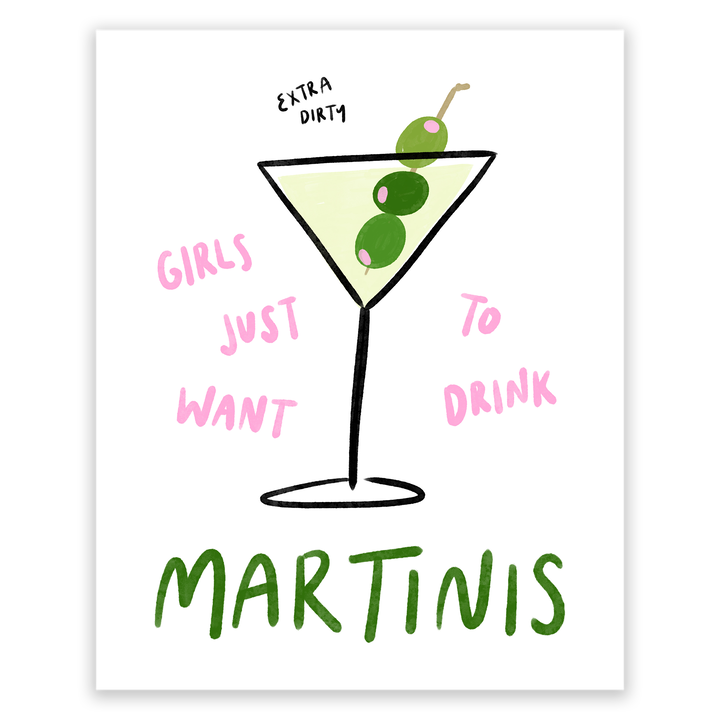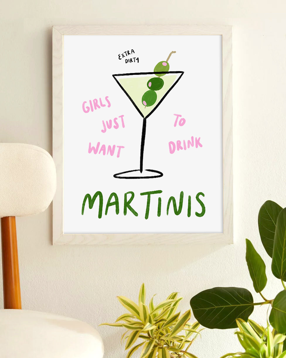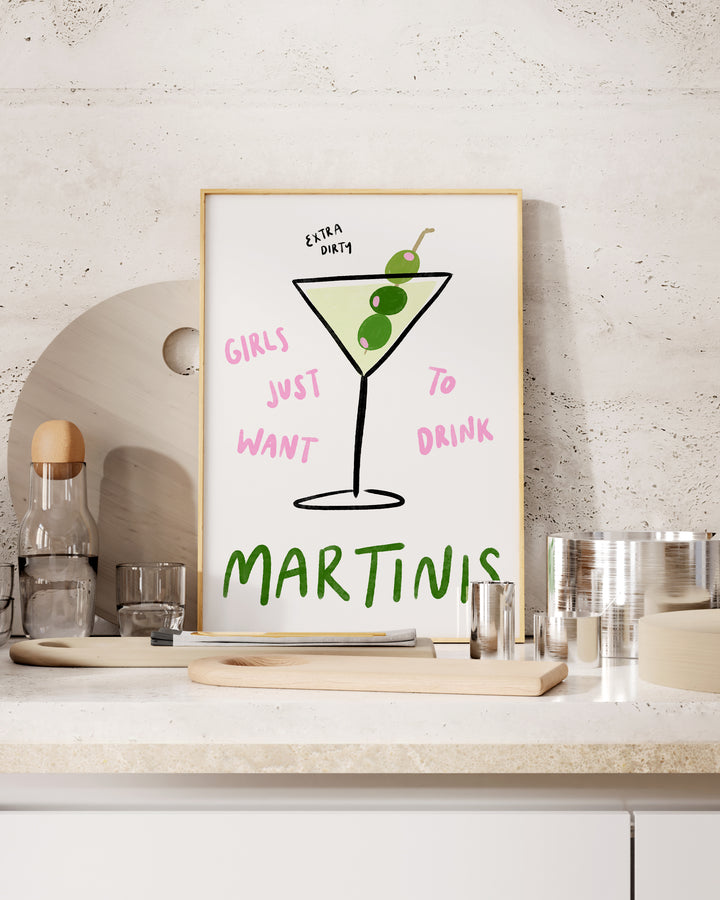For the girlies who love an extra dirty martini!! This print looks super cute on a bar cart, in the kitchen, or in the living room.