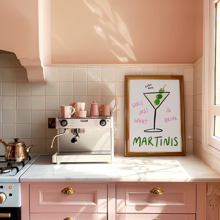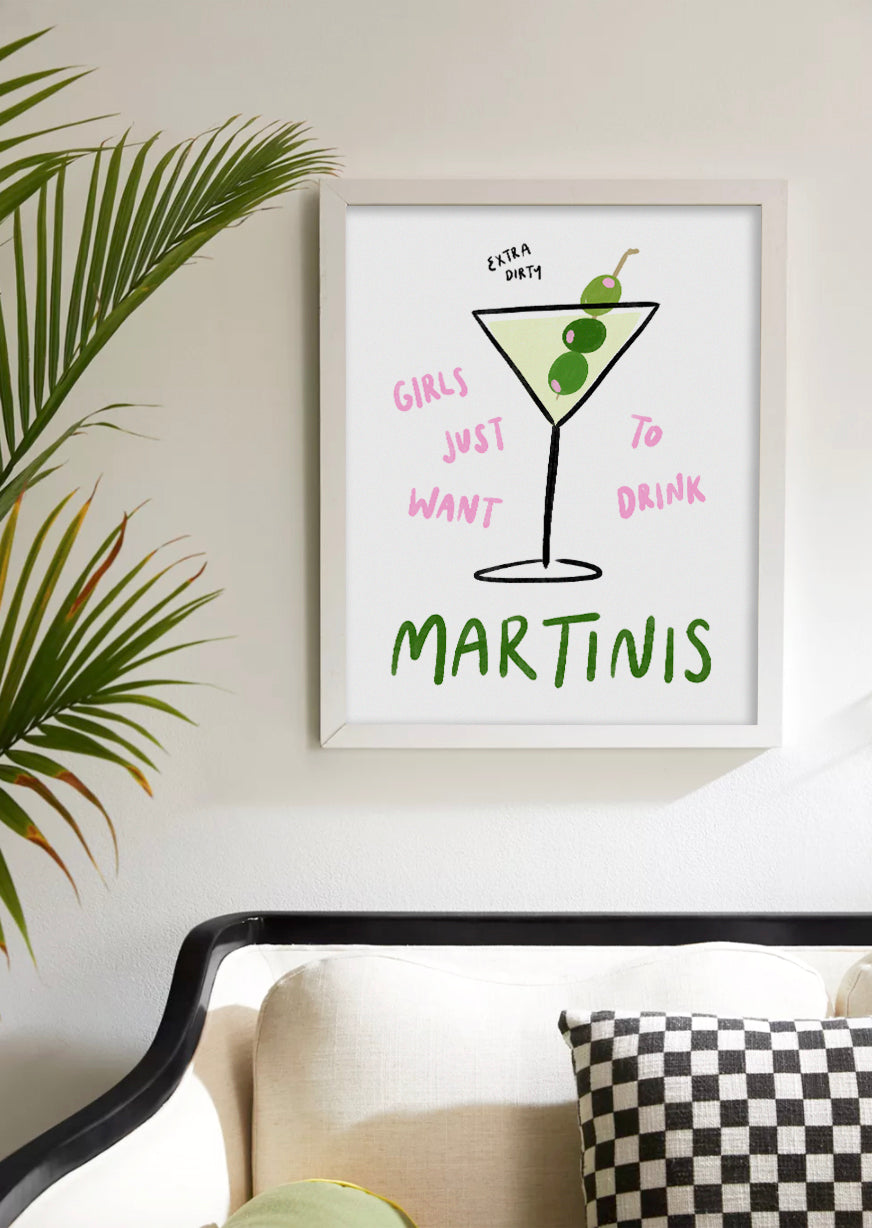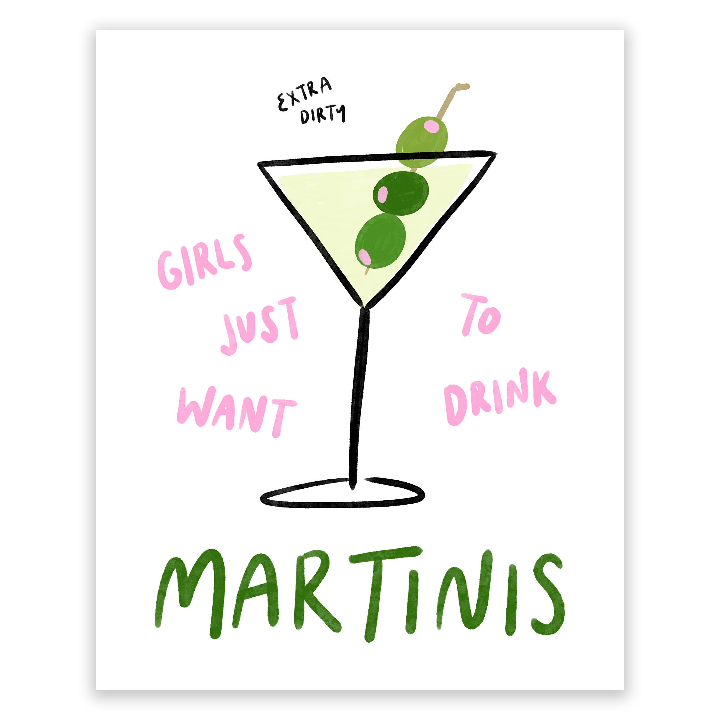 For the girlies who love an extra dirty martini!! This print looks super cute on a bar cart, in the kitchen, or in the living room.