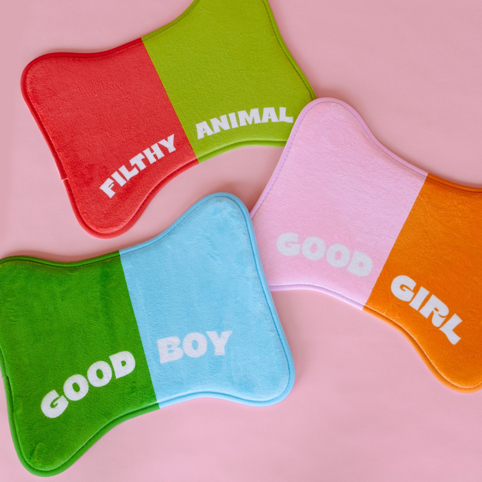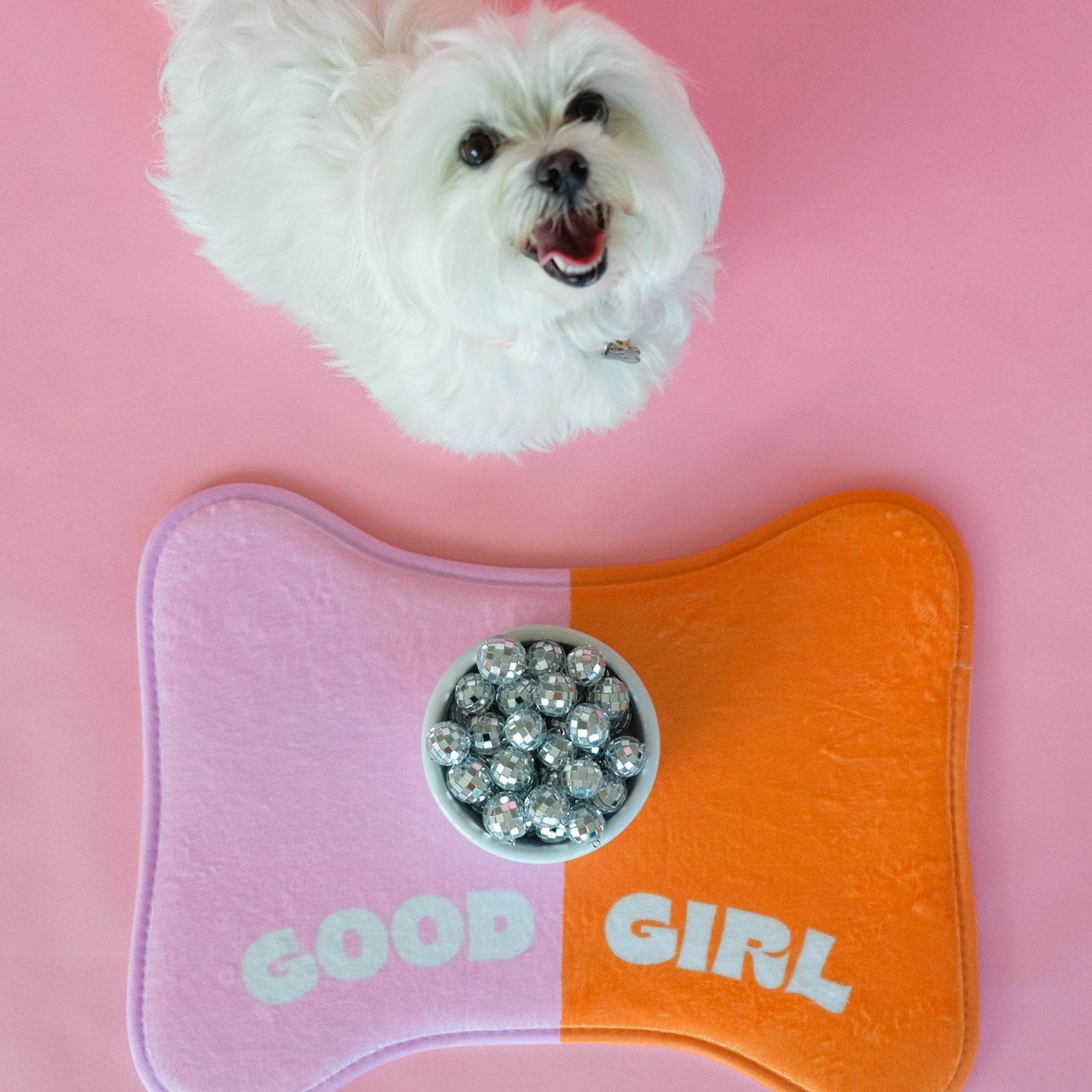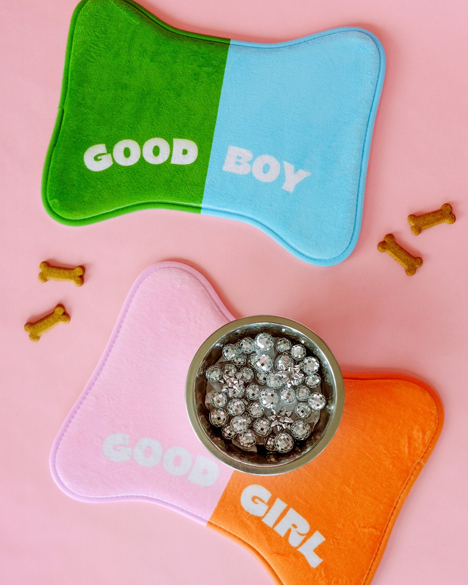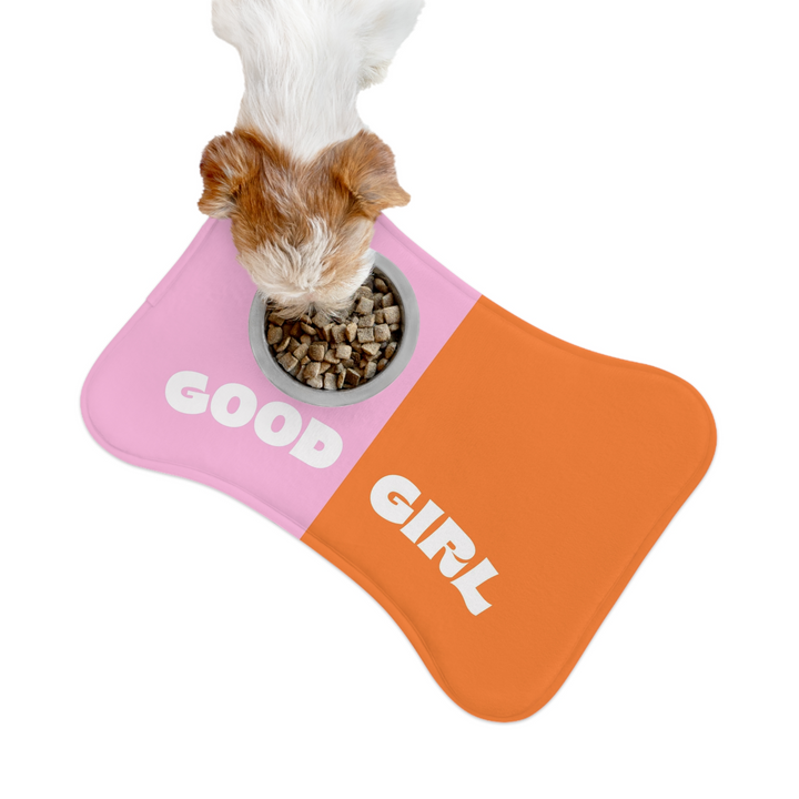 Minimize the mess and elevate your dog's dining experience with this bold and playful pink/orange color-blocked dog mat in the shape of a dog bone. With a non-slip bottom design to keep it in place for even the most active of eaters and a foam-filled material that’s highly absorbent, these mats make doggy meal time feel like a Michelin star dining experience. Your good girl deserves it!!