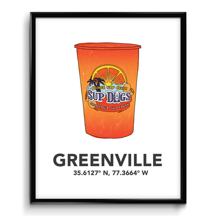 Bring home the vibrant energy of college glory days with this fun art print, a tribute to the iconic Sup Crush drink from Sup Dogs—a favorite among East Carolina University students in Greenville, NC. Perfect for hanging in your dorm room or in your first post-grad home, this piece is not just wall art—it's a celebration of the energy and shenanigans that define going out in college. Hang this as a daily reminder of carefree evenings and the unbreakable bonds formed over shared drinks; ensuring the spirit of your ECU college days stays with you long after graduation.
