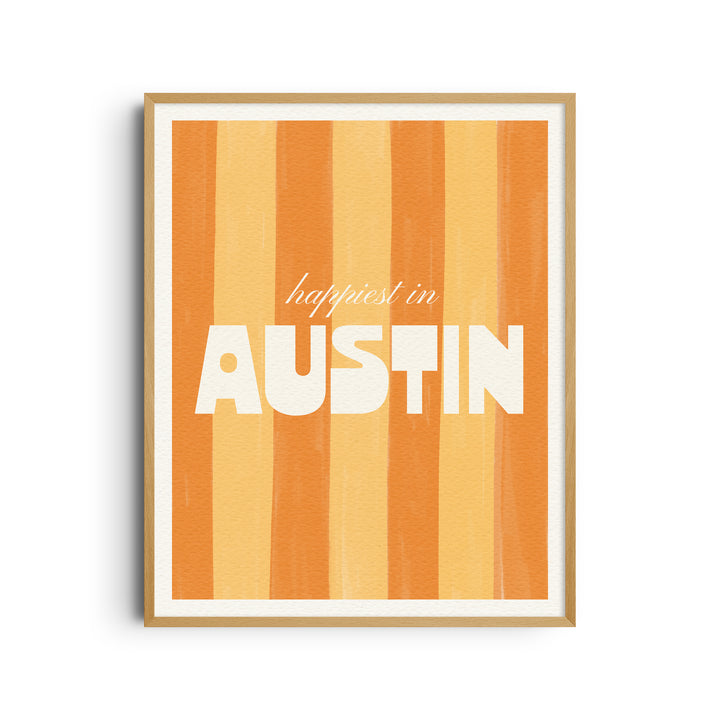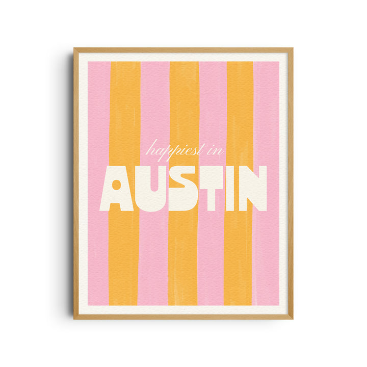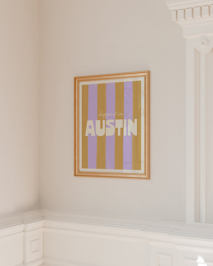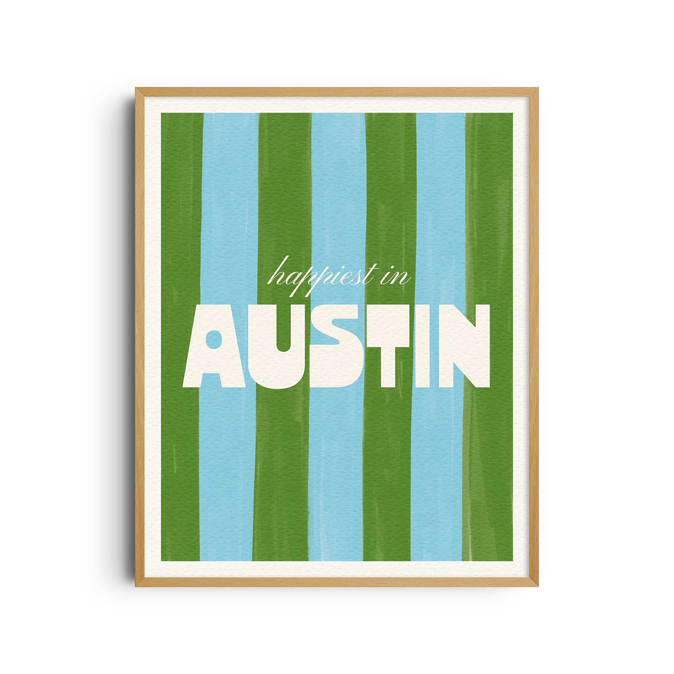 A retro bold striped art print perfect for anyone who's happy place is cowboy boots, country music, and tacos in Austin, Texas. Yeehaw!