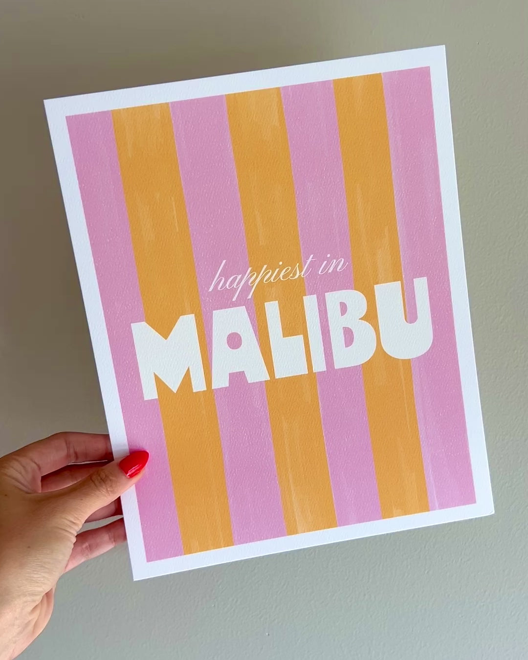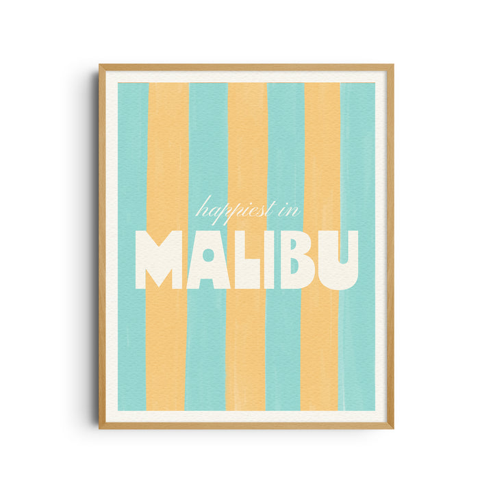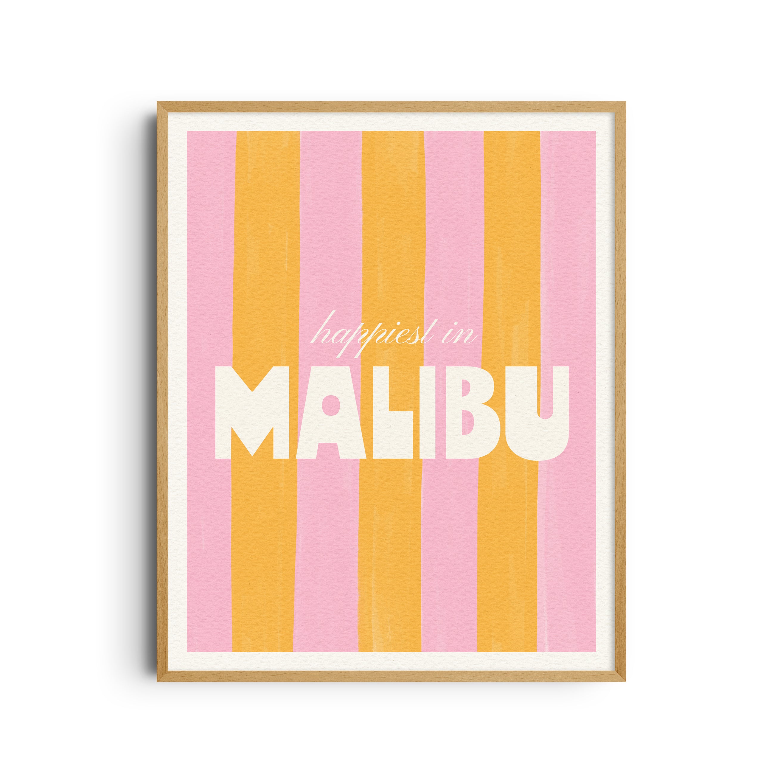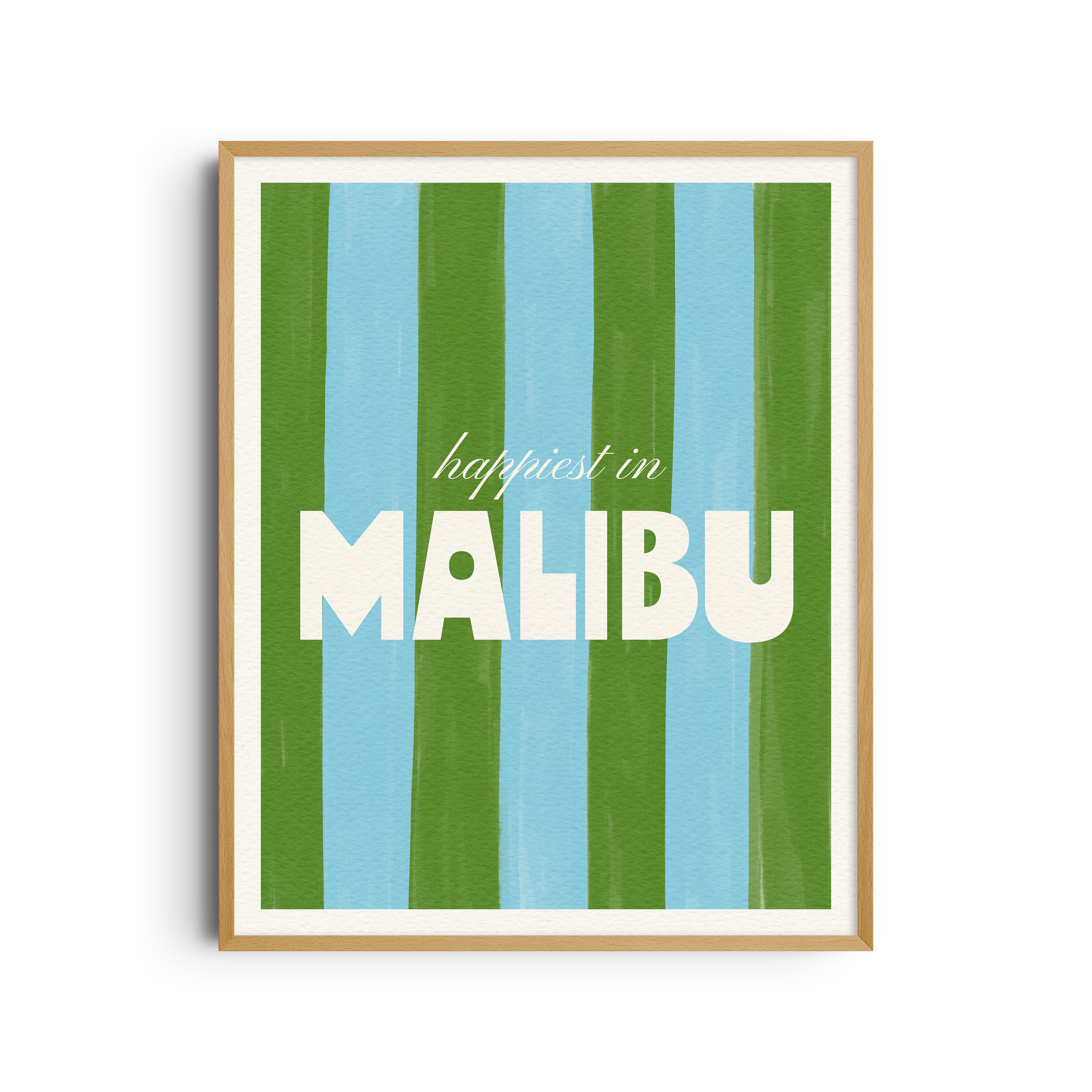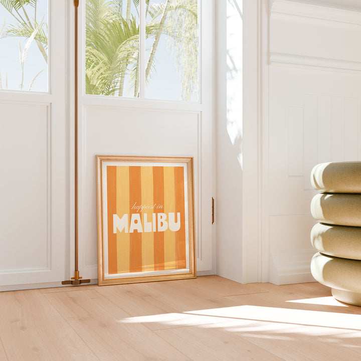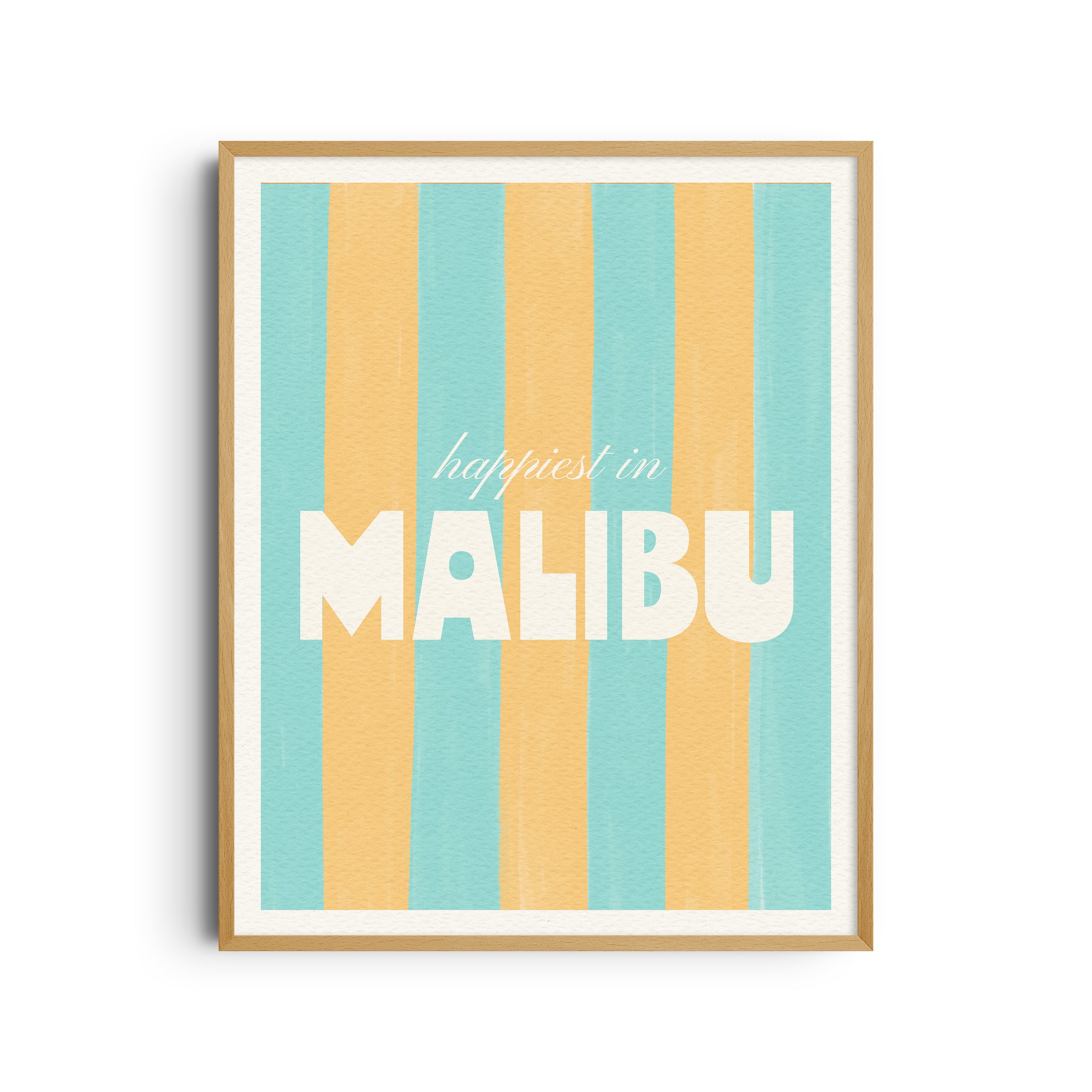 A retro bold striped art print perfect for anyone who's happy place is in Malibu, California.
