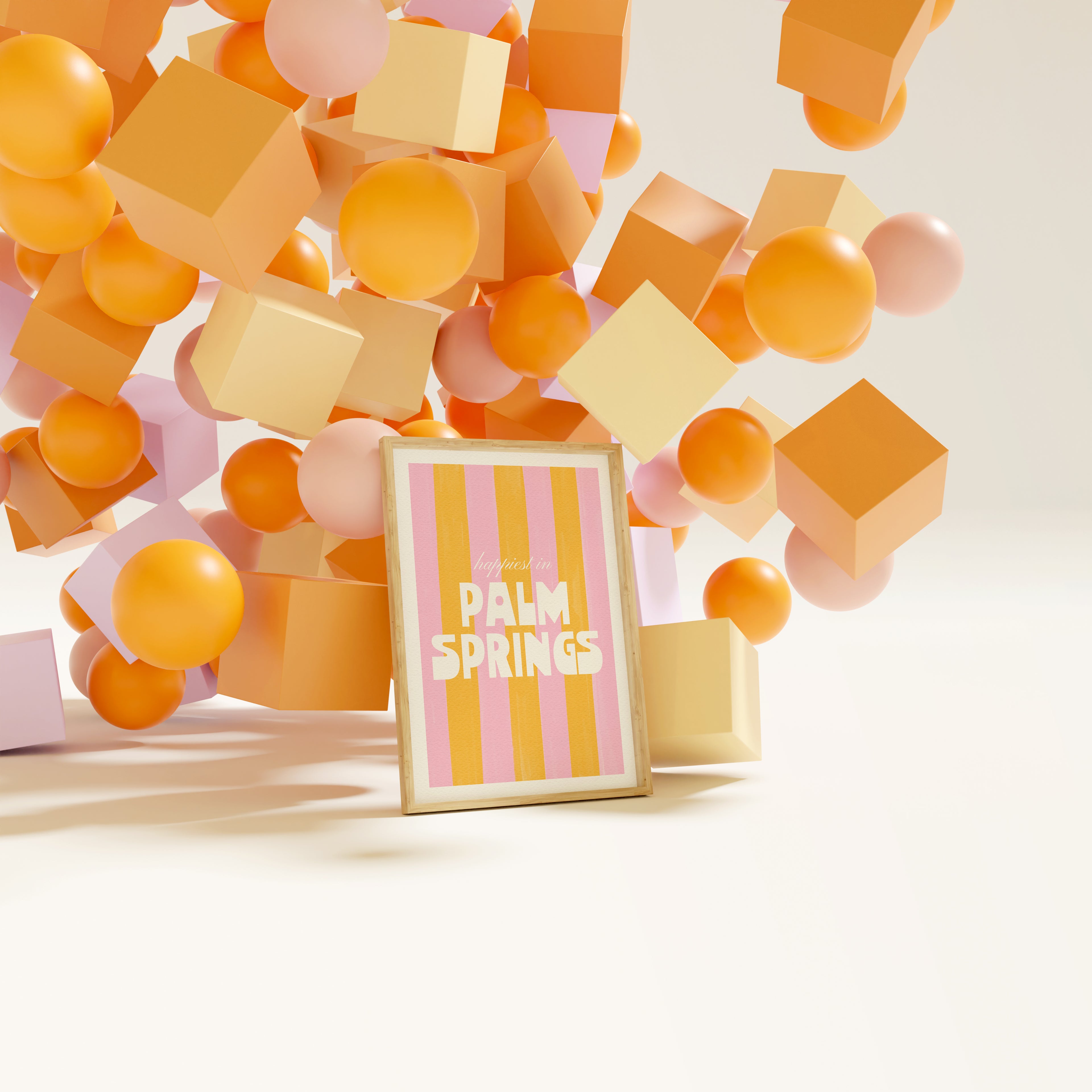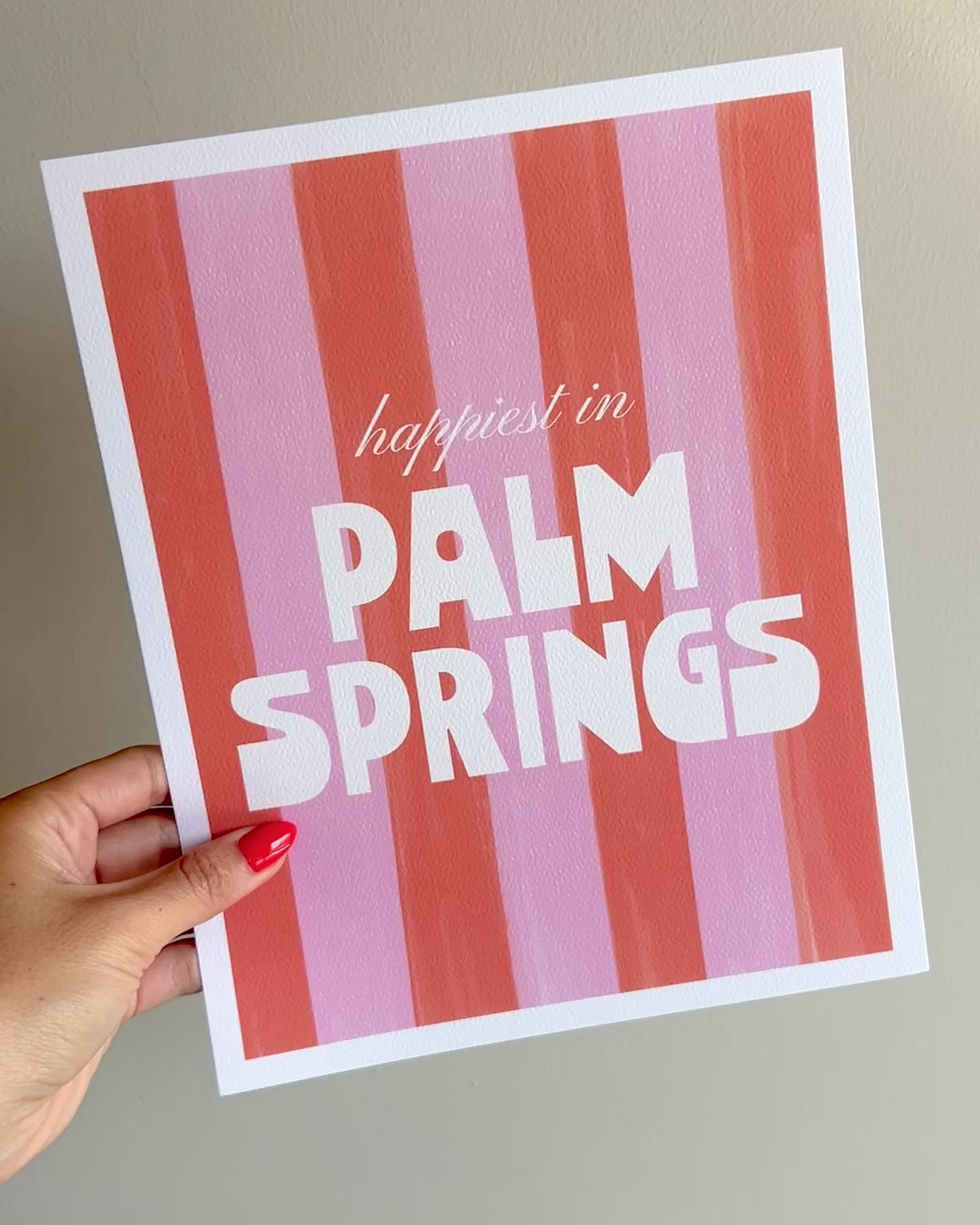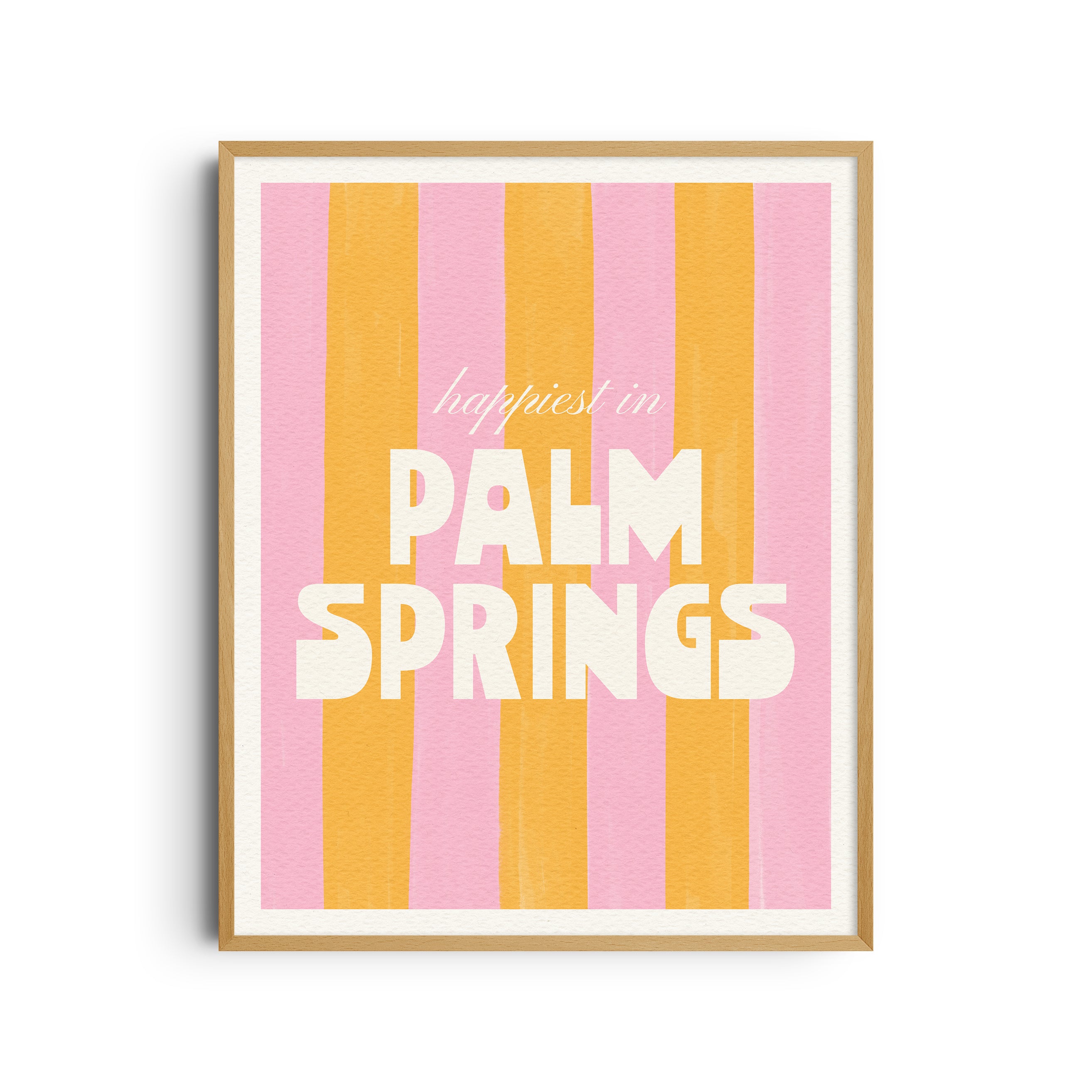 A retro bold striped art print perfect for anyone who's happy place is in the desert heat surrounded by pastel colors and mid century modern architecture in Palm Springs, California.