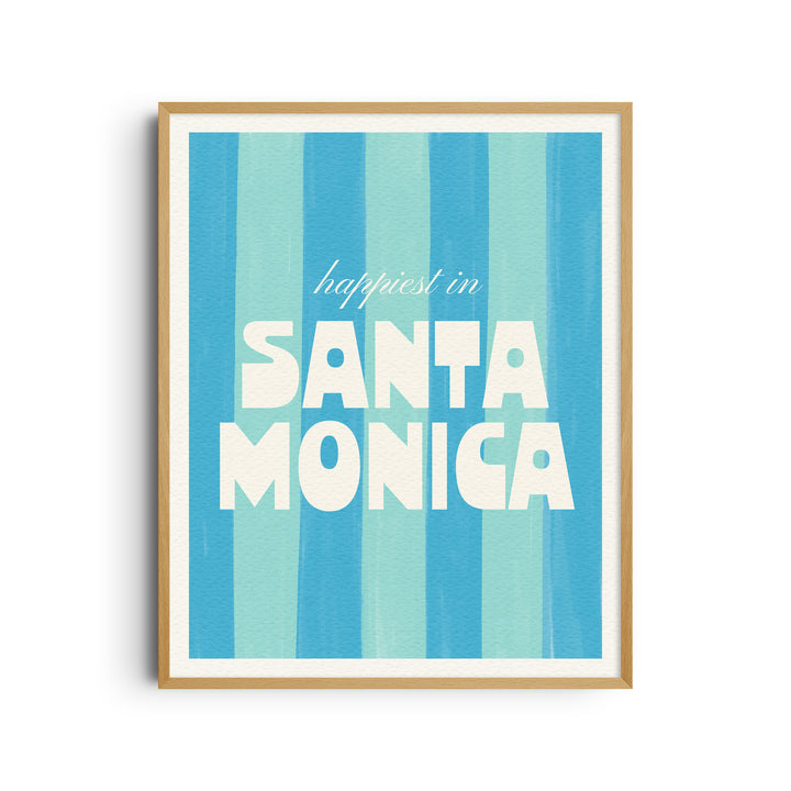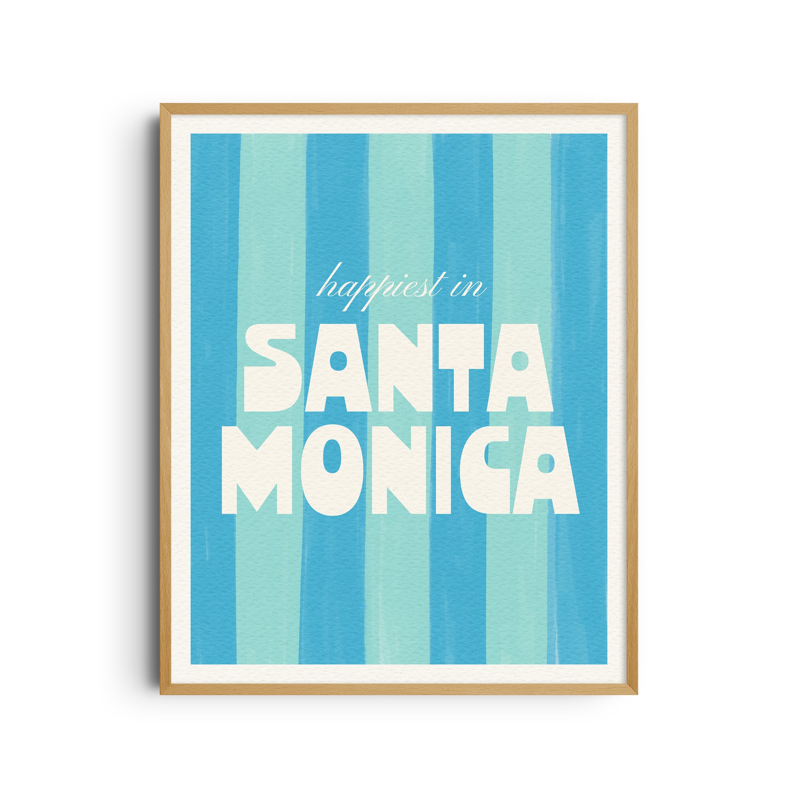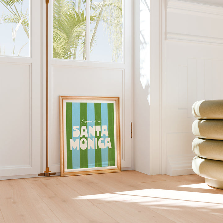 A retro bold striped art print perfect for anyone who's happy place is surfing, tacos, and shopping on Third Street Promenade or Montana Ave in Santa Monica, California.