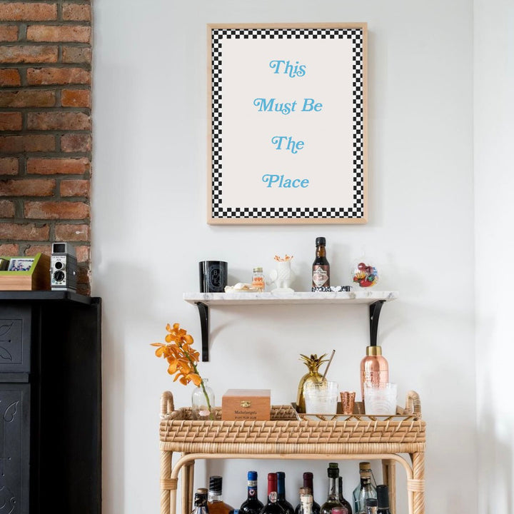 The perfect art print to hang in your favorite place in the house; whether that is the bar, kitchen, or living room couch is up to you and we're not judging either way! This retro art print features a white and black checkered border with a cute quote in the middle that is sure to deliver playful, good vibes wherever it is displayed.