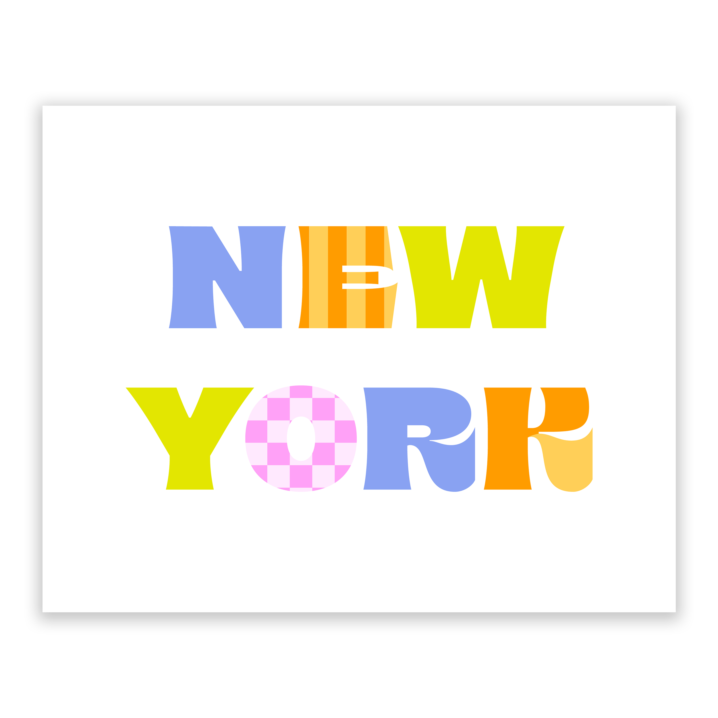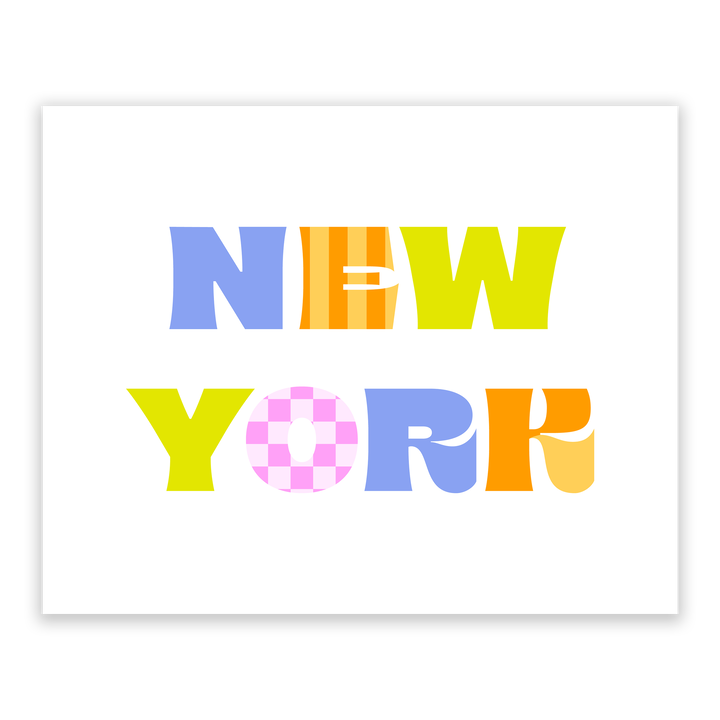 Make a statement in your space with this 'New York in ‘Color art print, featuring funky letters filled with vibrant color-blocking and bold patterns. It's the perfect pop of color for anyone looking to add a touch of urban fun to their decor. Ideal for a modern living space or a trendy apartment, this print is a celebration of the NYC's energy and a must-have for fans of eclectic and colorful art prints.