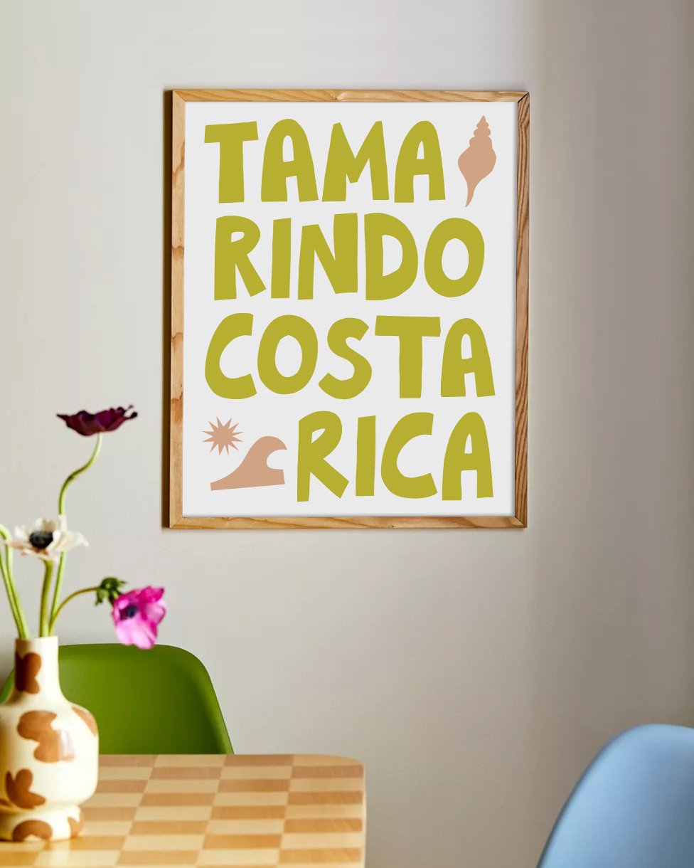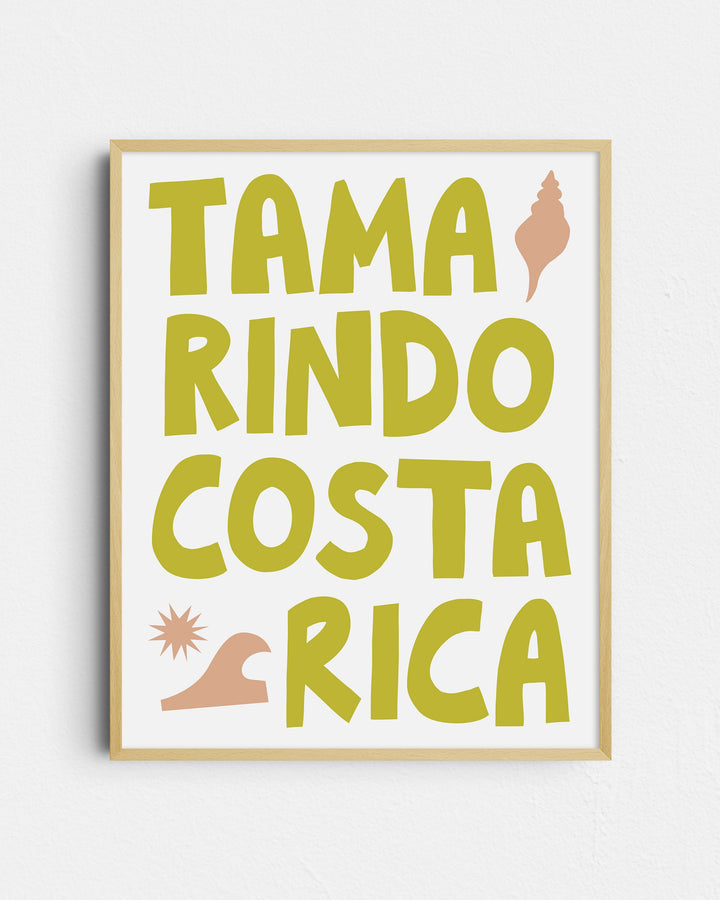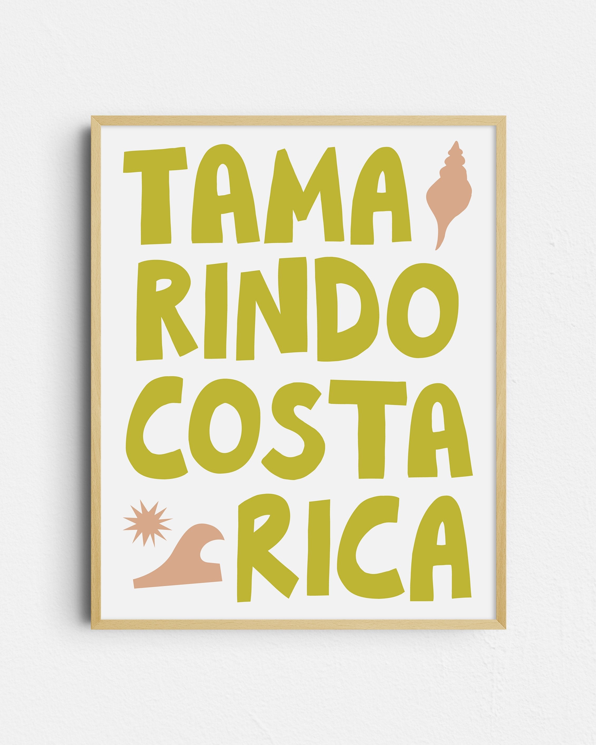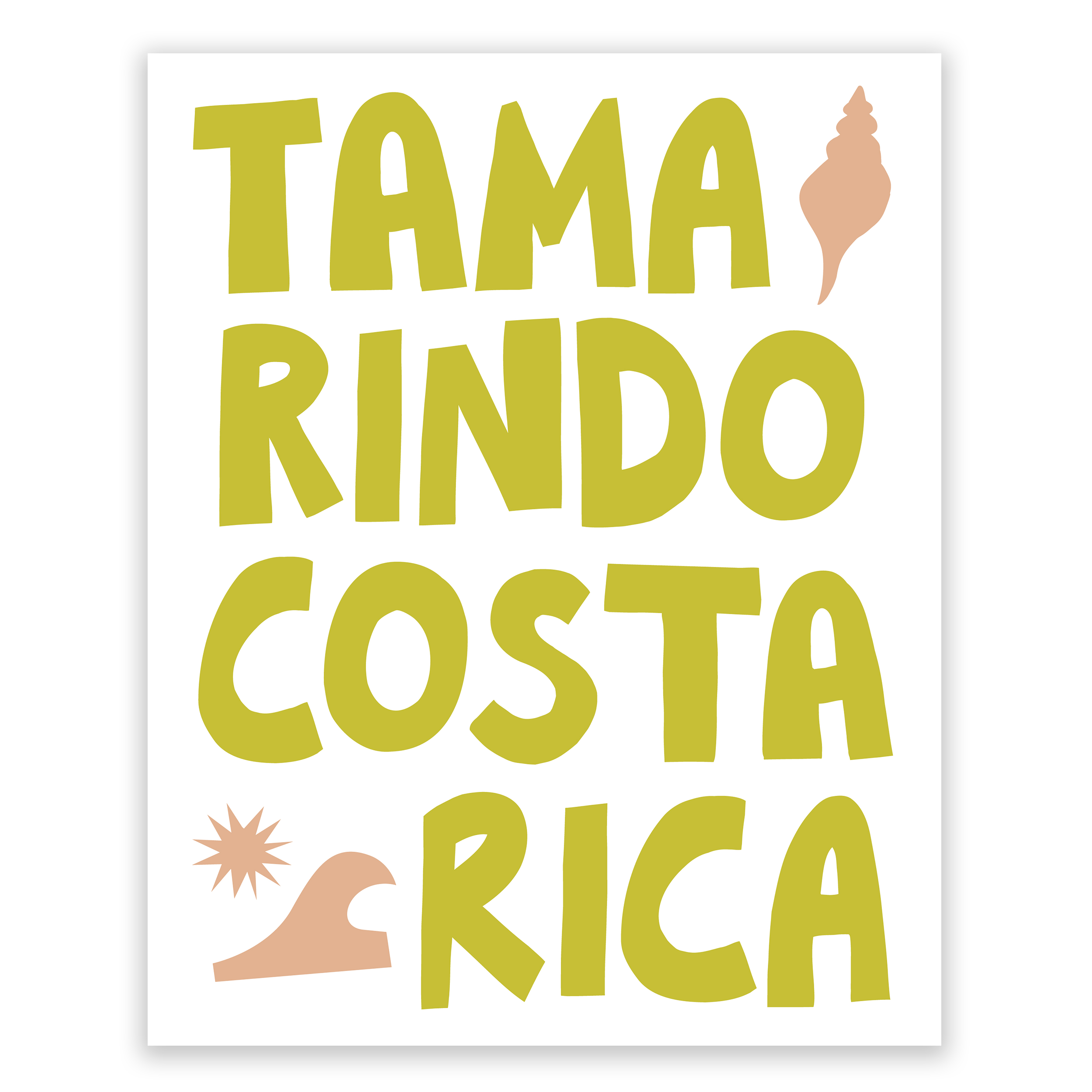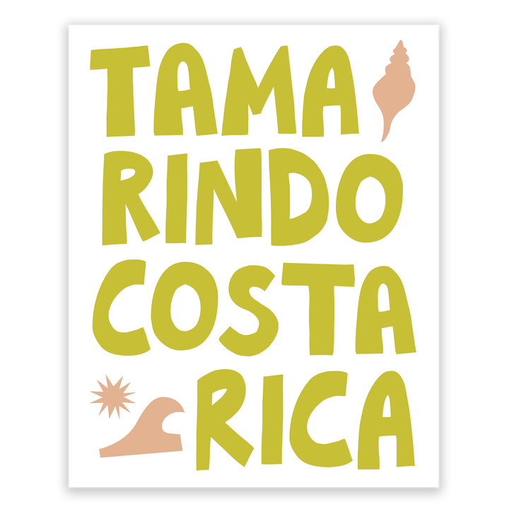 Escape to the sun-kissed shores of 'Tamarindo, Costa Rica' with this captivating art print, designed to bring the essence of Pura Vida right into your home. The bold, playful typography and warm, earthy tones reflect Tamarindo's laid-back beach life and lush landscapes. Adorn your walls with this piece and let the whimsical shell and wave illustrations serve as a daily reminder of Costa Rica's coastal charm, perfect for surf aficionados, beachgoers, and lovers of the tropical haven.