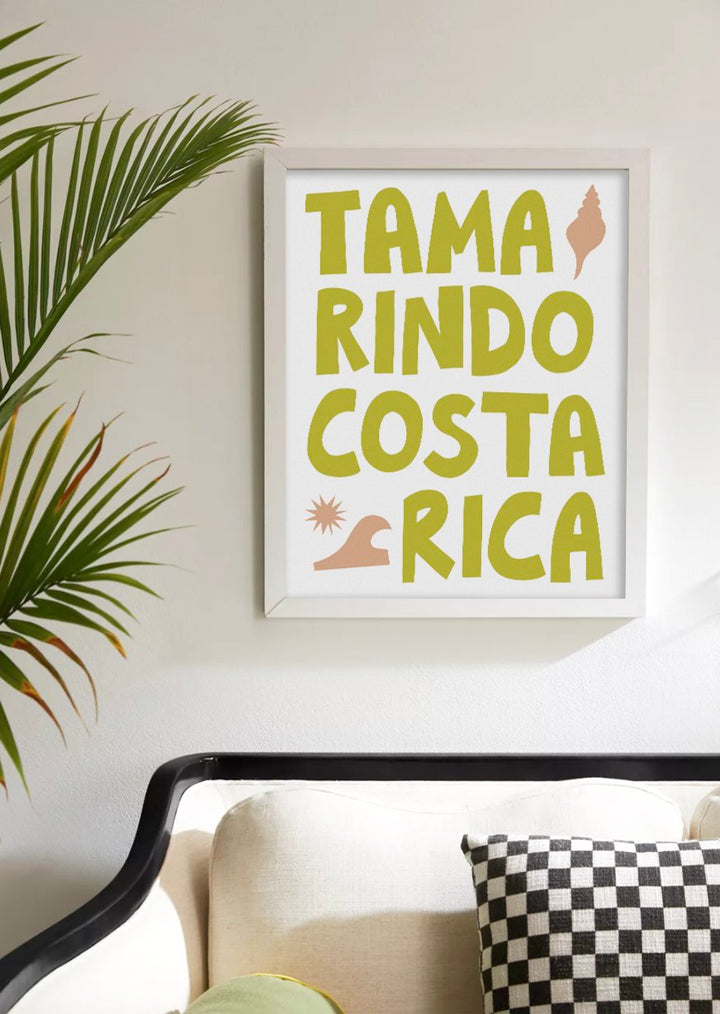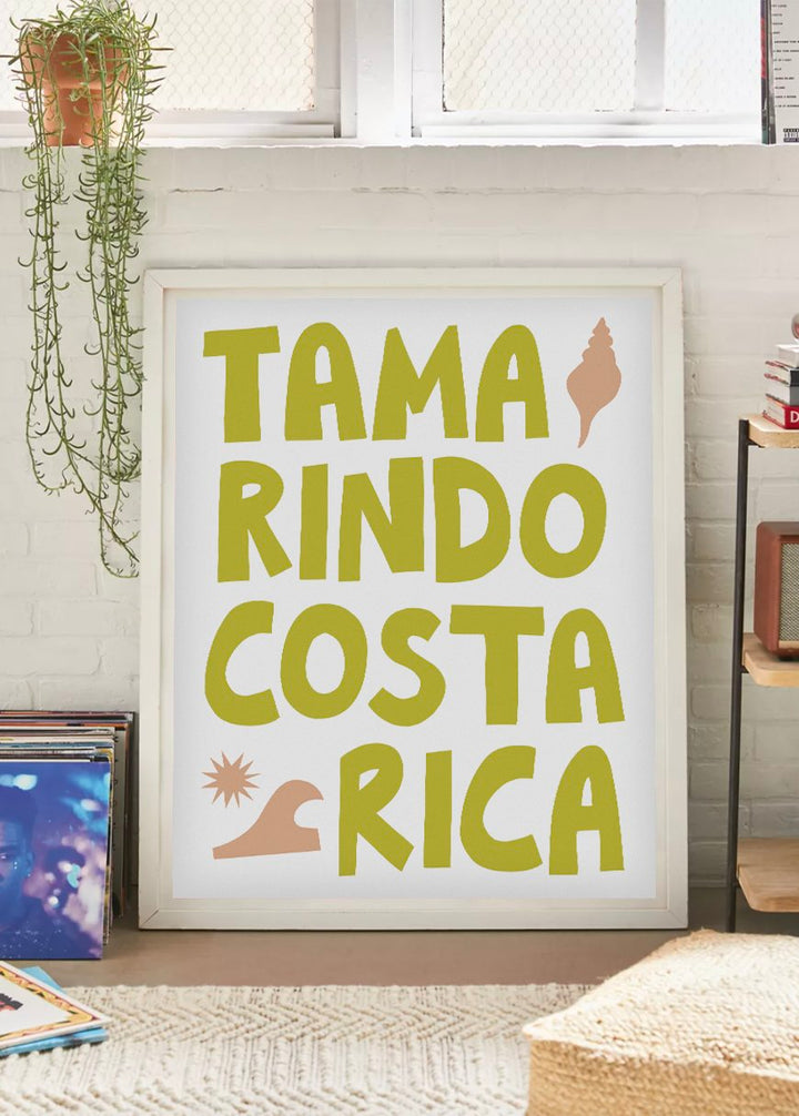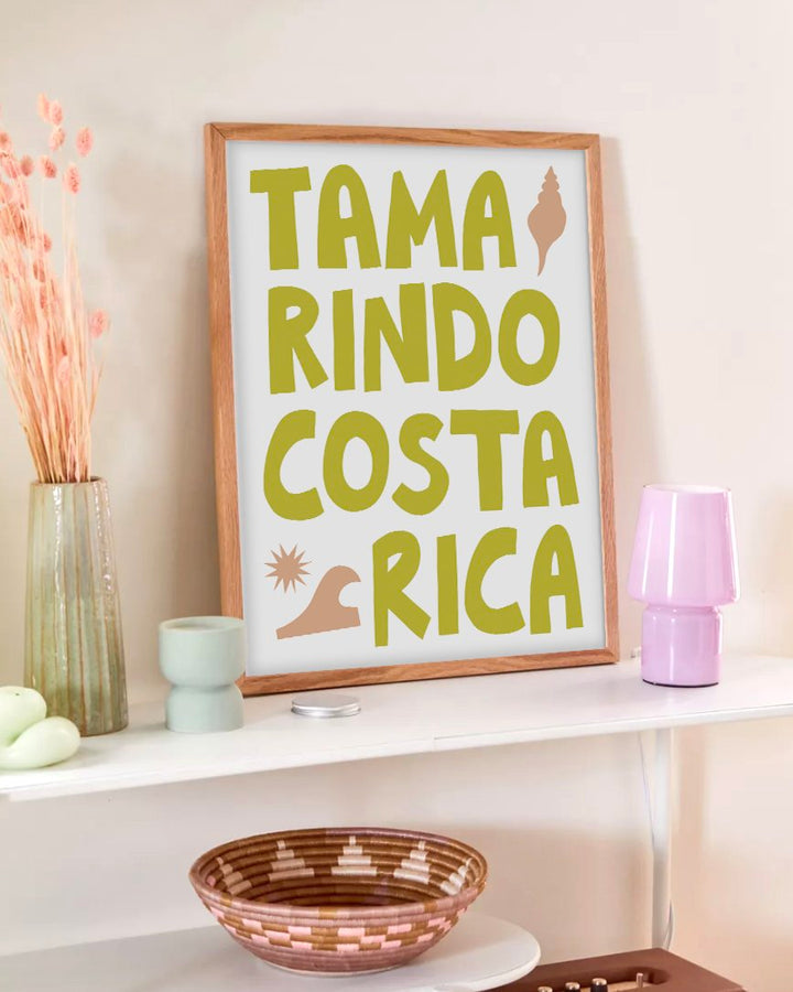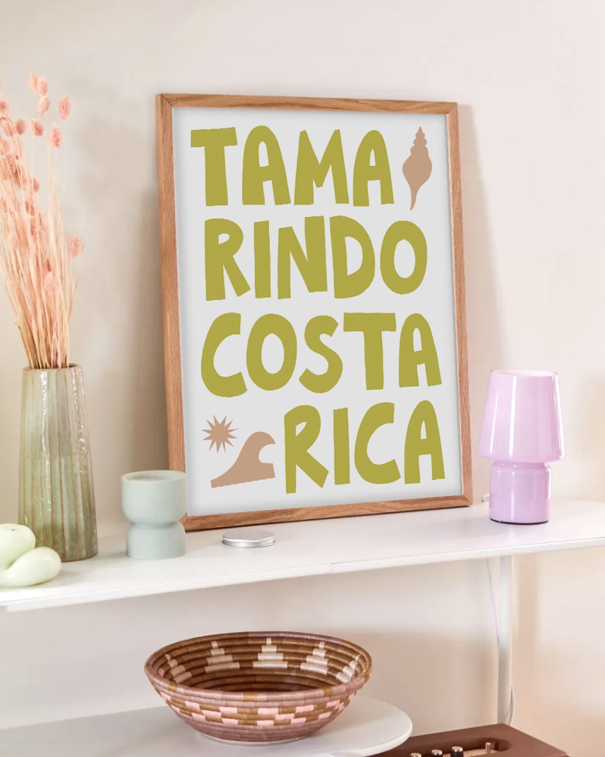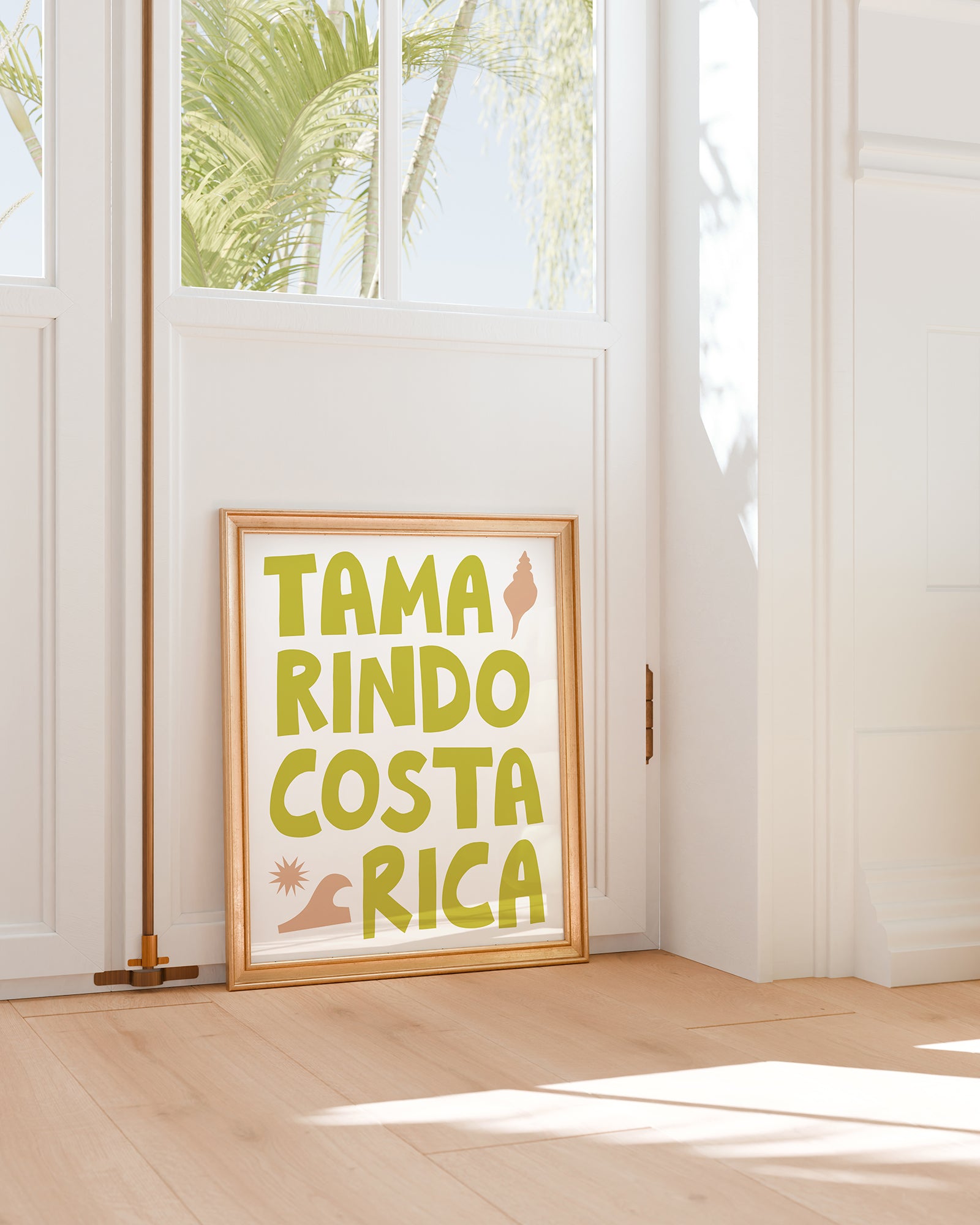 Escape to the sun-kissed shores of 'Tamarindo, Costa Rica' with this captivating art print, designed to bring the essence of Pura Vida right into your home. The bold, playful typography and warm, earthy tones reflect Tamarindo's laid-back beach life and lush landscapes. Adorn your walls with this piece and let the whimsical shell and wave illustrations serve as a daily reminder of Costa Rica's coastal charm, perfect for surf aficionados, beachgoers, and lovers of the tropical haven.