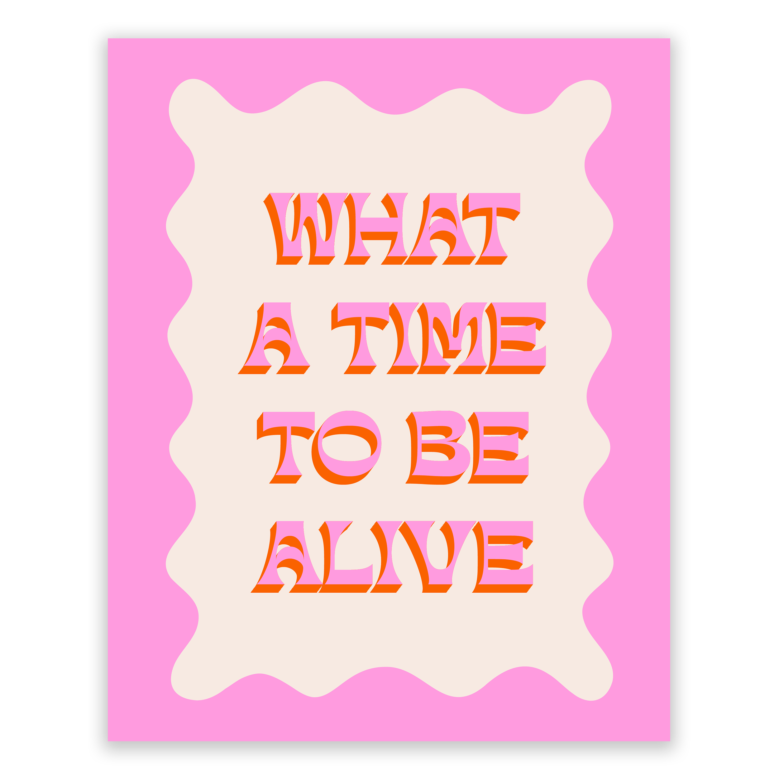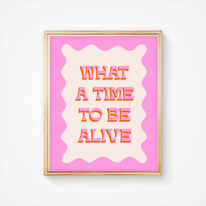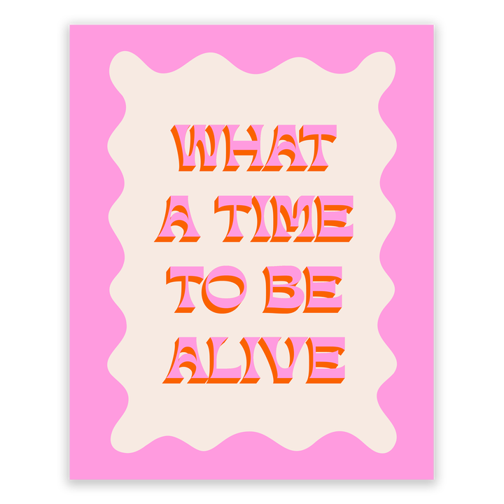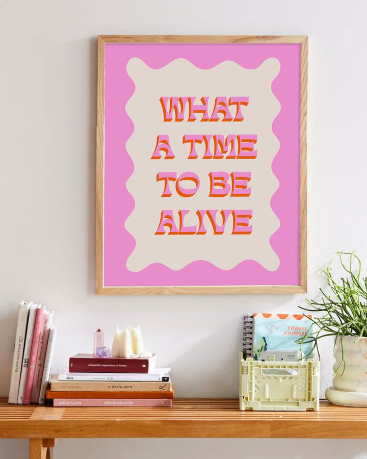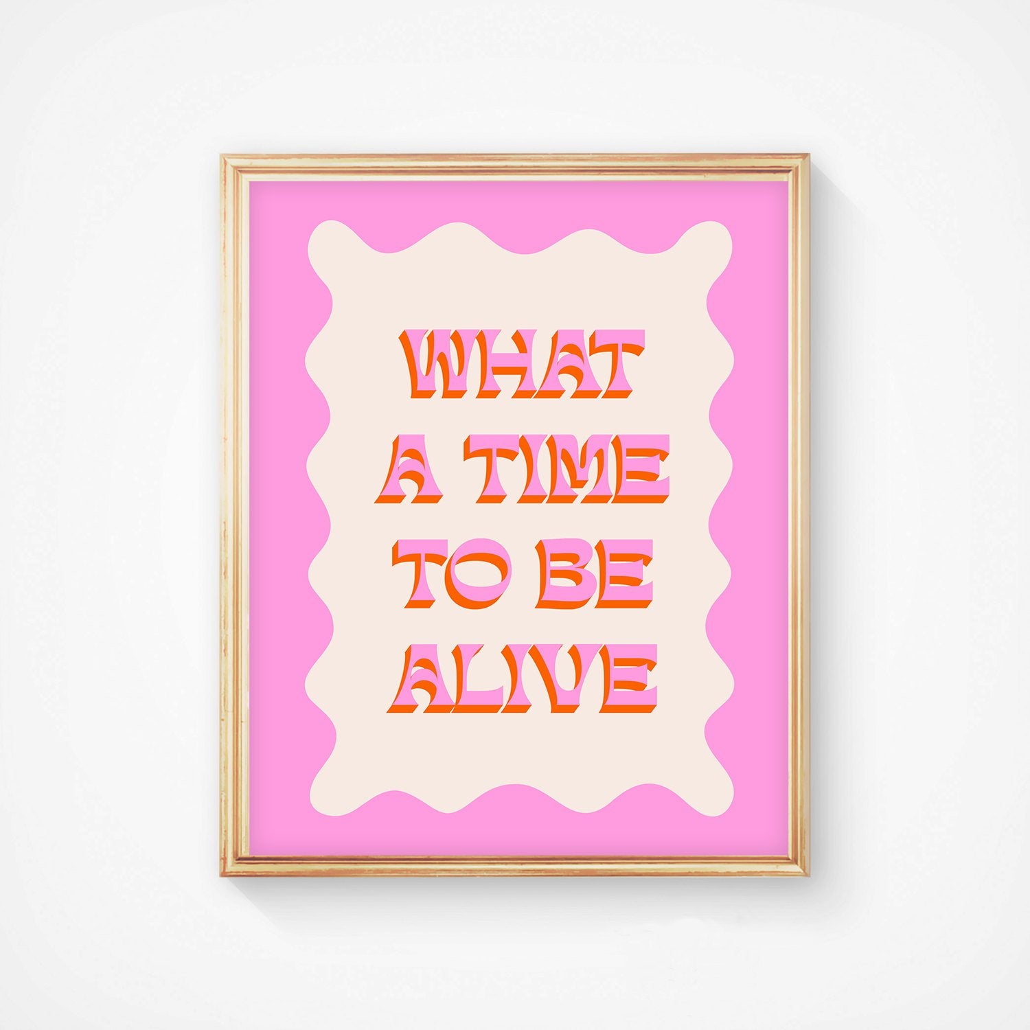 This best selling print is a bold and playful reminder to live in the present and make the most of your every day! Featuring a bright pink squiggle border and funky retro text, this artwork is a burst of whimsy with a modern twist. It’s perfect for brightening up any room with its lively hues and spirited message. Ideal for those who love to mix a bit of old-school charm with contemporary chic, this piece adds a splash of color and a daily dose of motivation to your home.