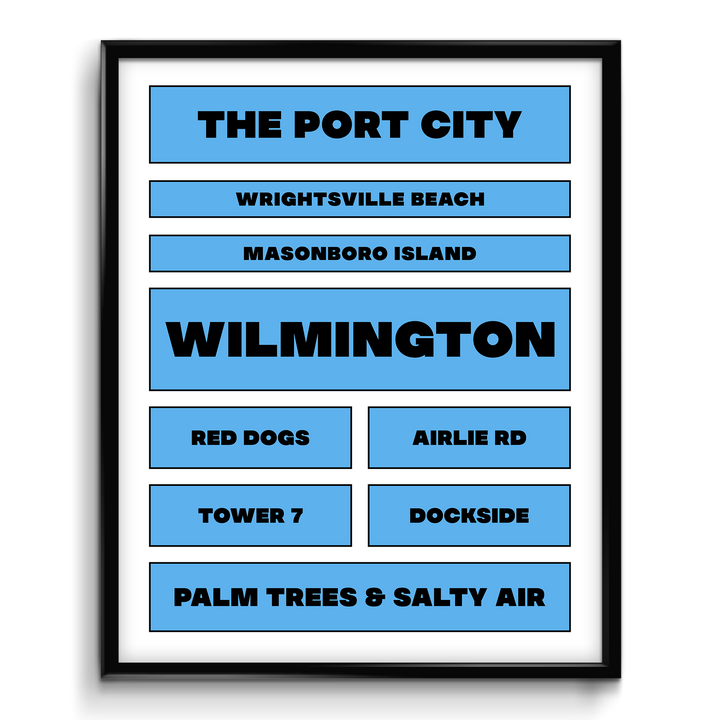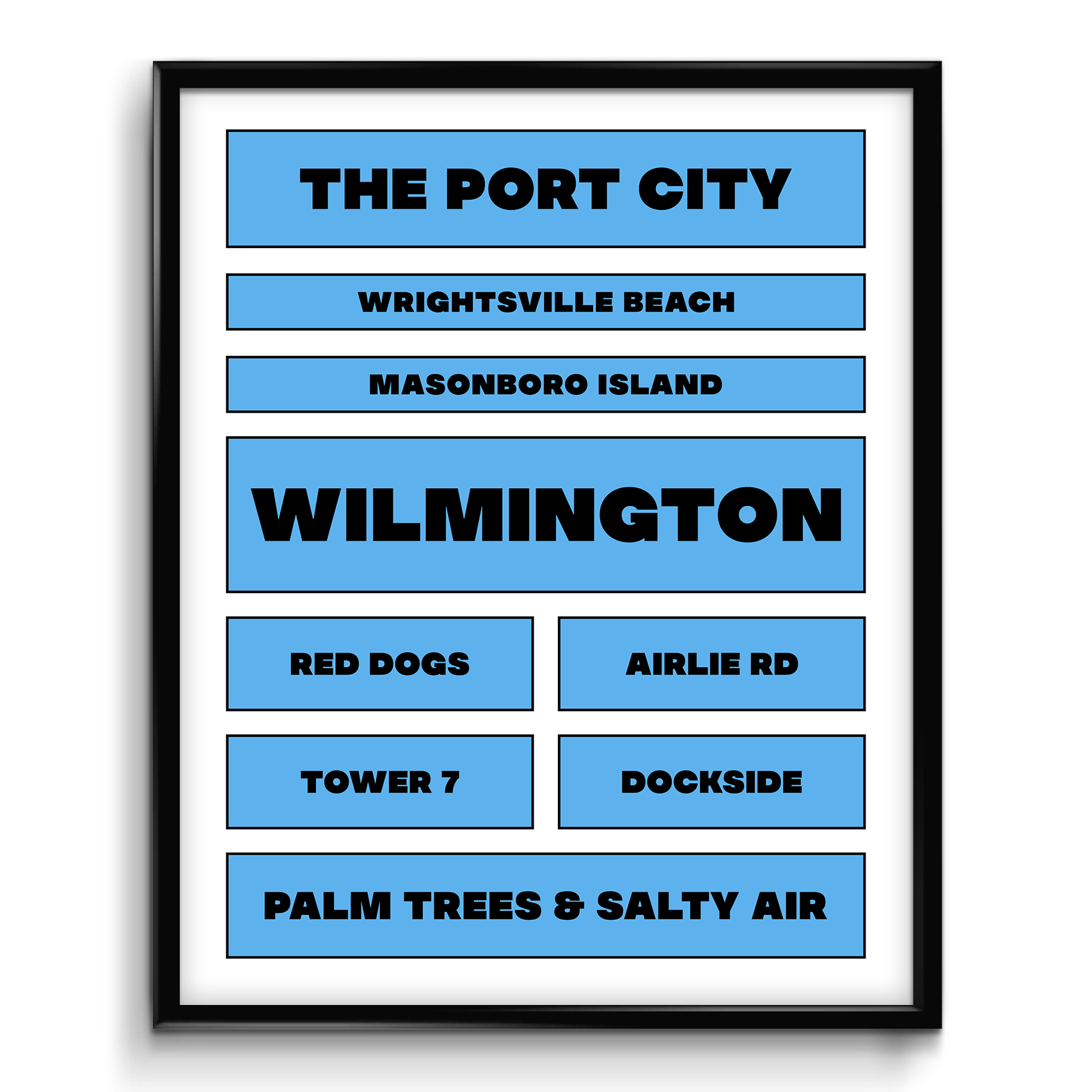 Inspired by retro concert posters, this vibrant graphic artwork pays homage to Wilmington NC’s most iconic and beloved spots. Highlights include: Wrightsville Beach, Masonboro Island, iconic beach bar, Red Dogs, popular restaurants like Tower 7 and Dockside, and scenic streets like Airlie Road. This poster captures all the best that this beach town as to offer!
