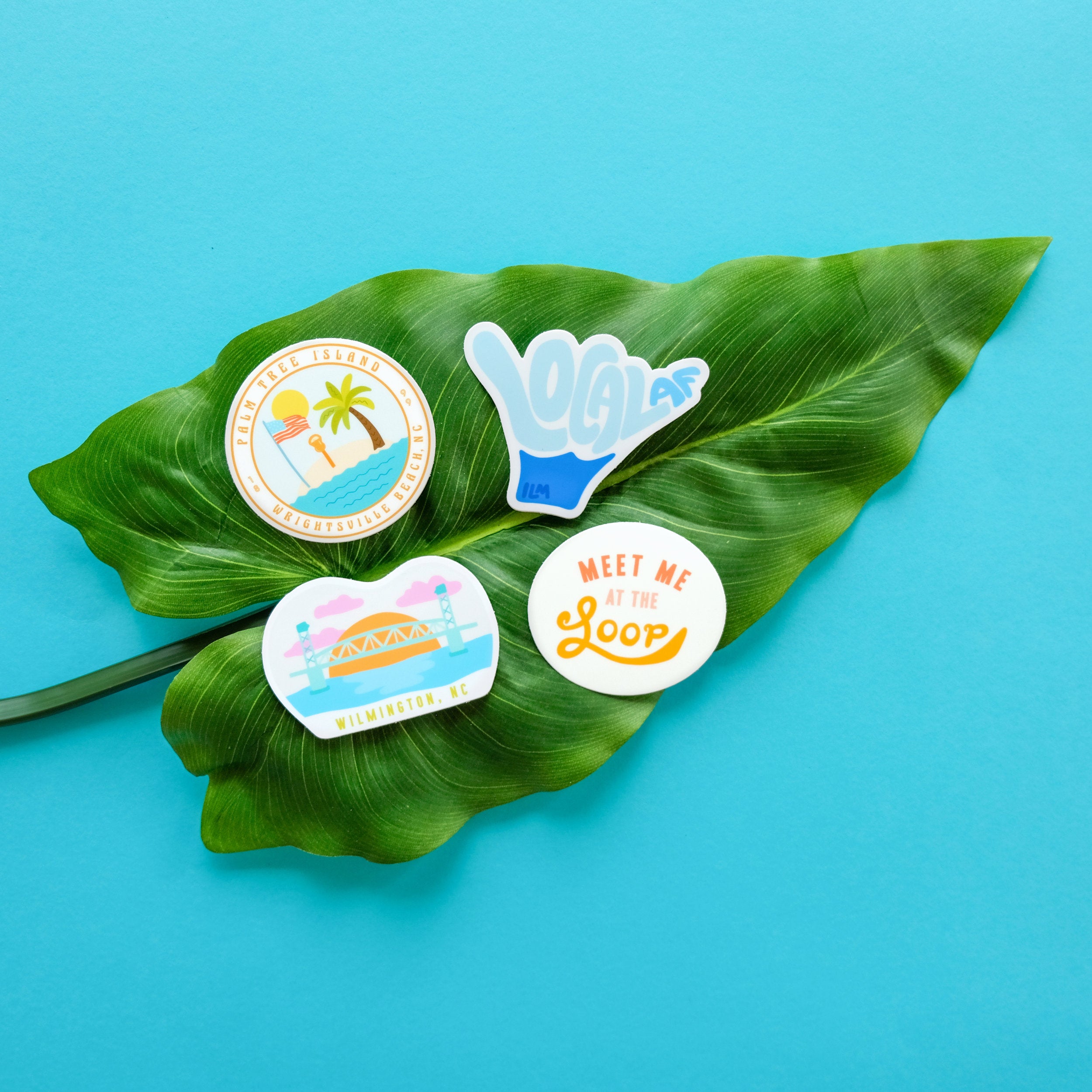 If you've ever been to Wrightsville Beach, NC I'm sure you've said to friends "Meet me at the loop" countless times before. The Loop is an iconic near 3 mile walk that circles around the heart of Wrightsville Beach. This sticker is a cute way to represent Wrightsville Beach/Wilmington NC and was created in collaboration with What's Up Wilmington for an exclusive "Welcome to Wilmington" sticker collab.
