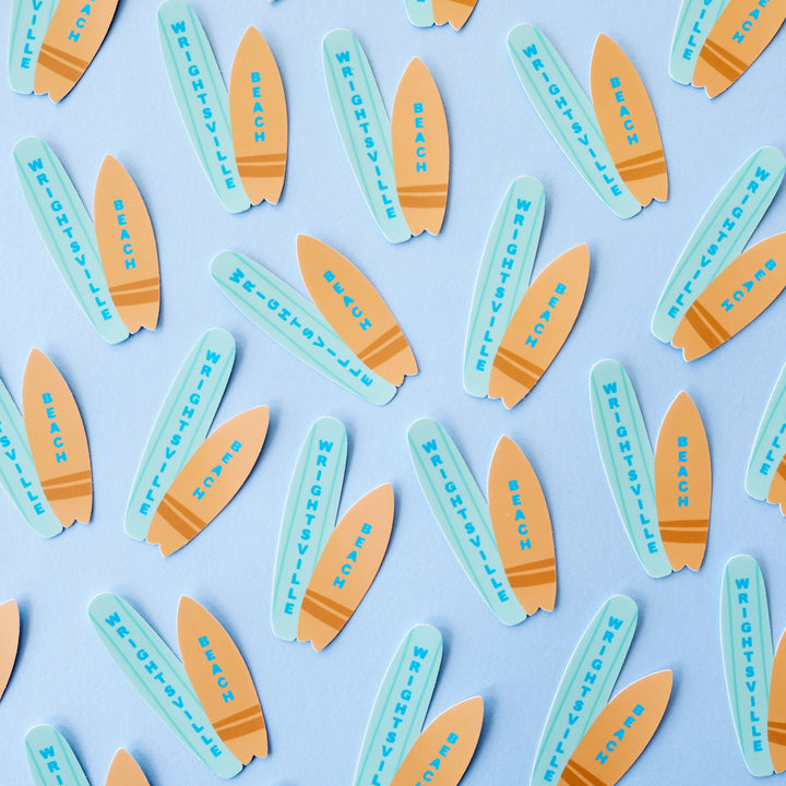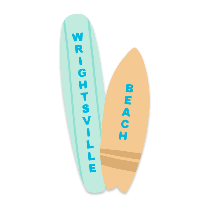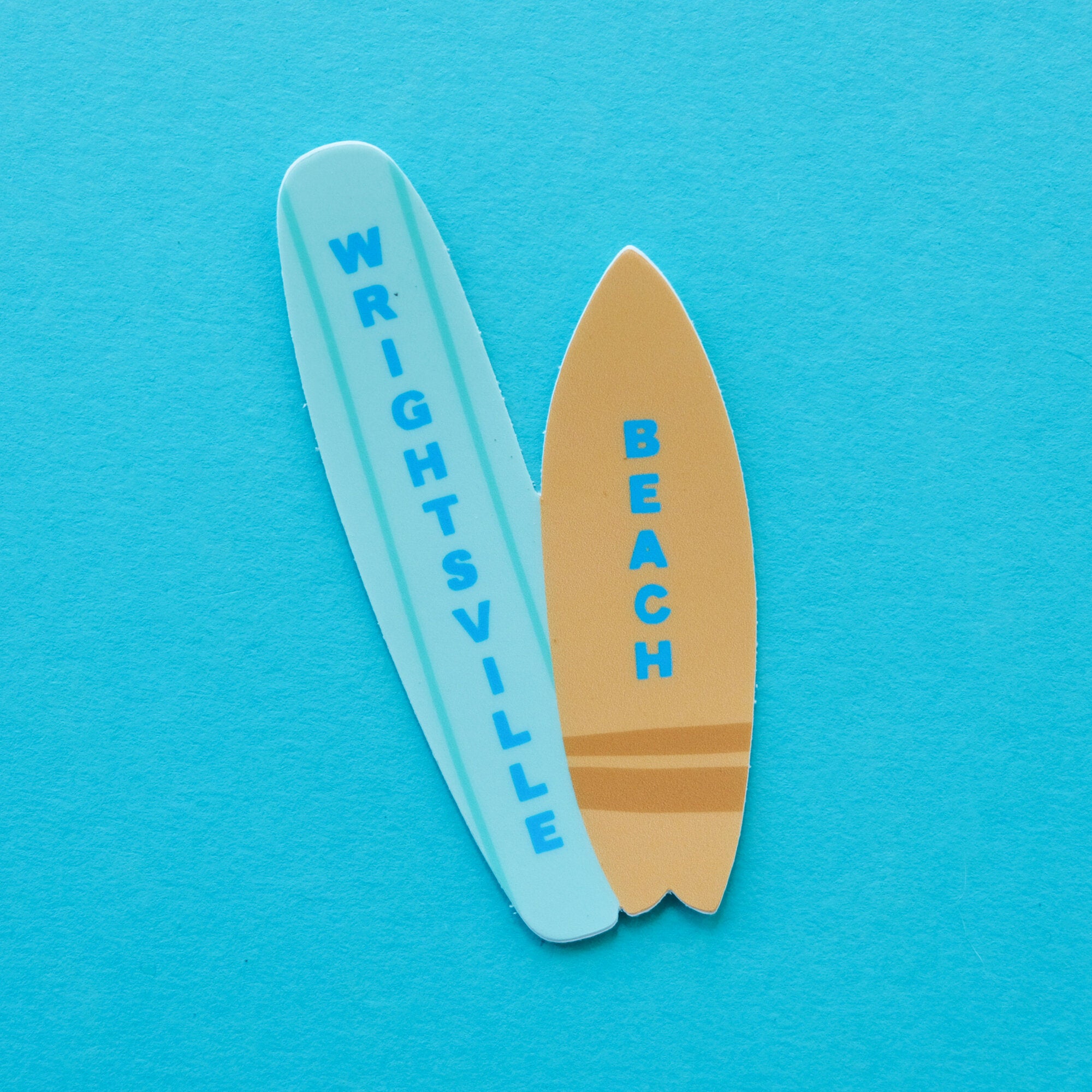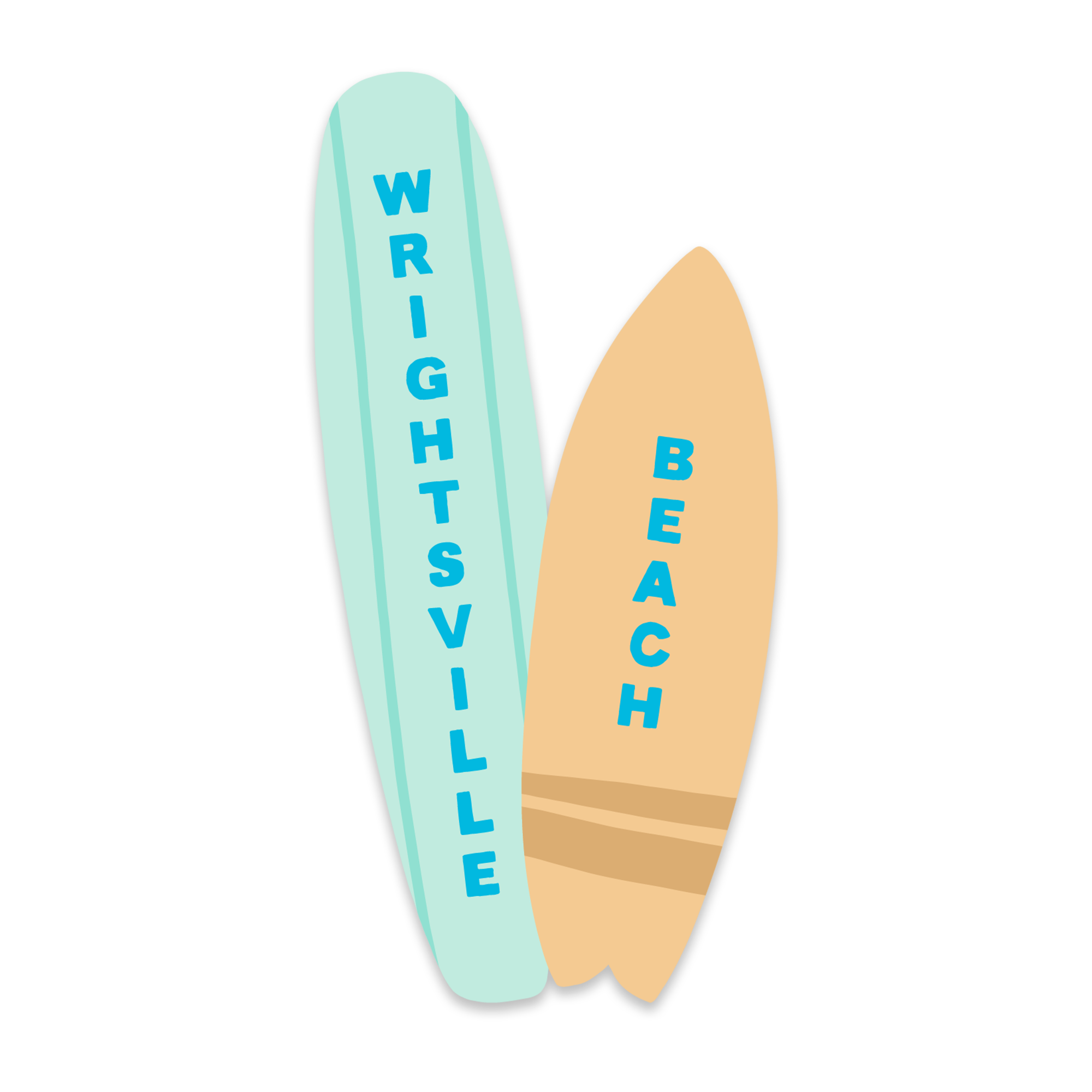 Represent the sunny surf town of Wrightsville Beach, North Carolina with this cute surfboard sticker.